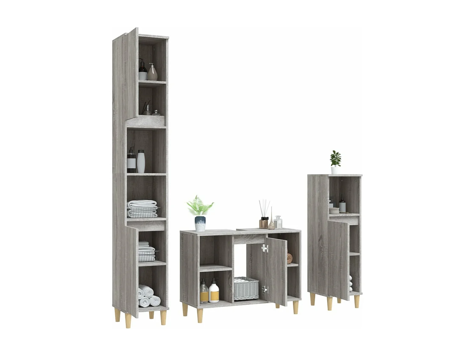 Ensemble de meubles de salle de bain 3 pcs Sonoma gris