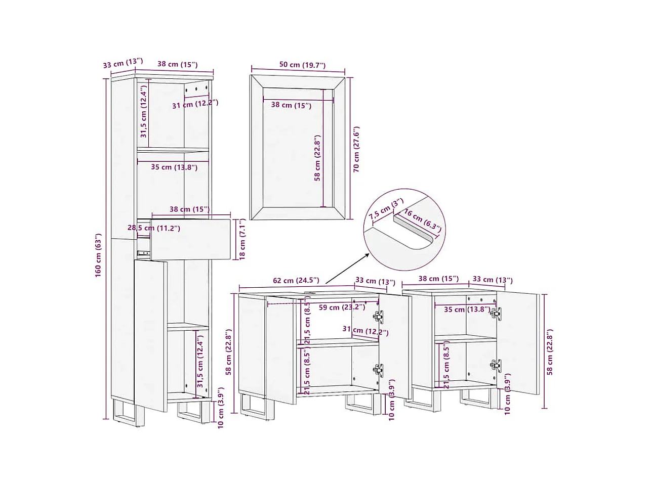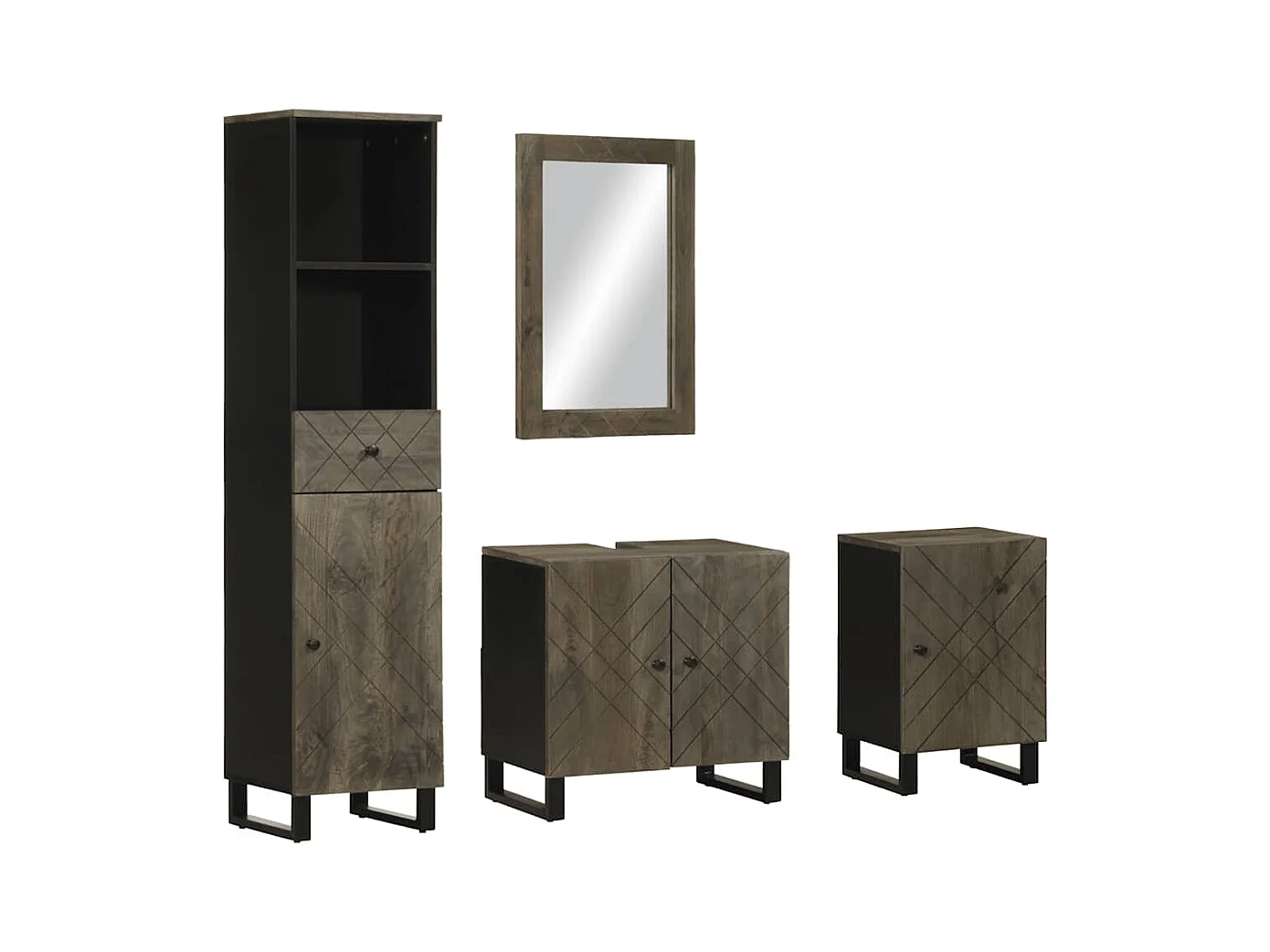 Ensemble de meubles de salle de bain 4 pcs noir manguier massif