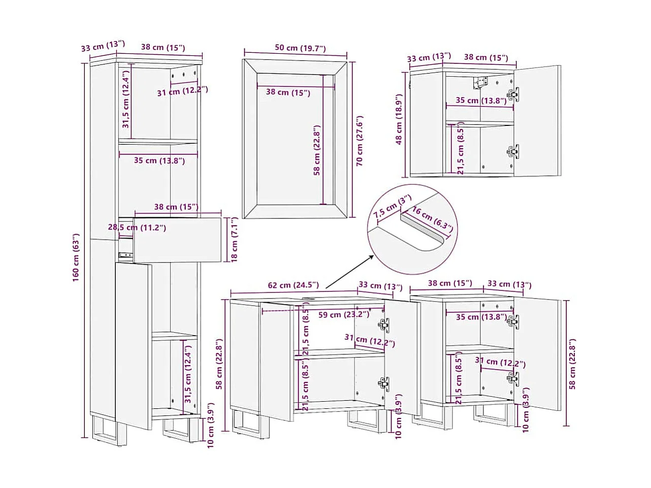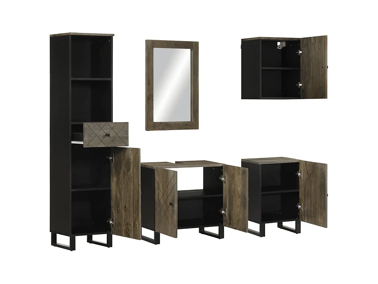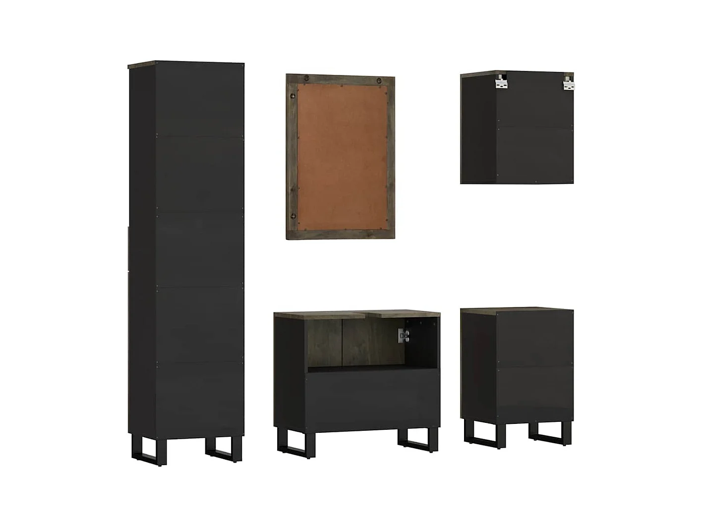Ensemble de meubles de salle de bain 5 pcs noir manguier massif