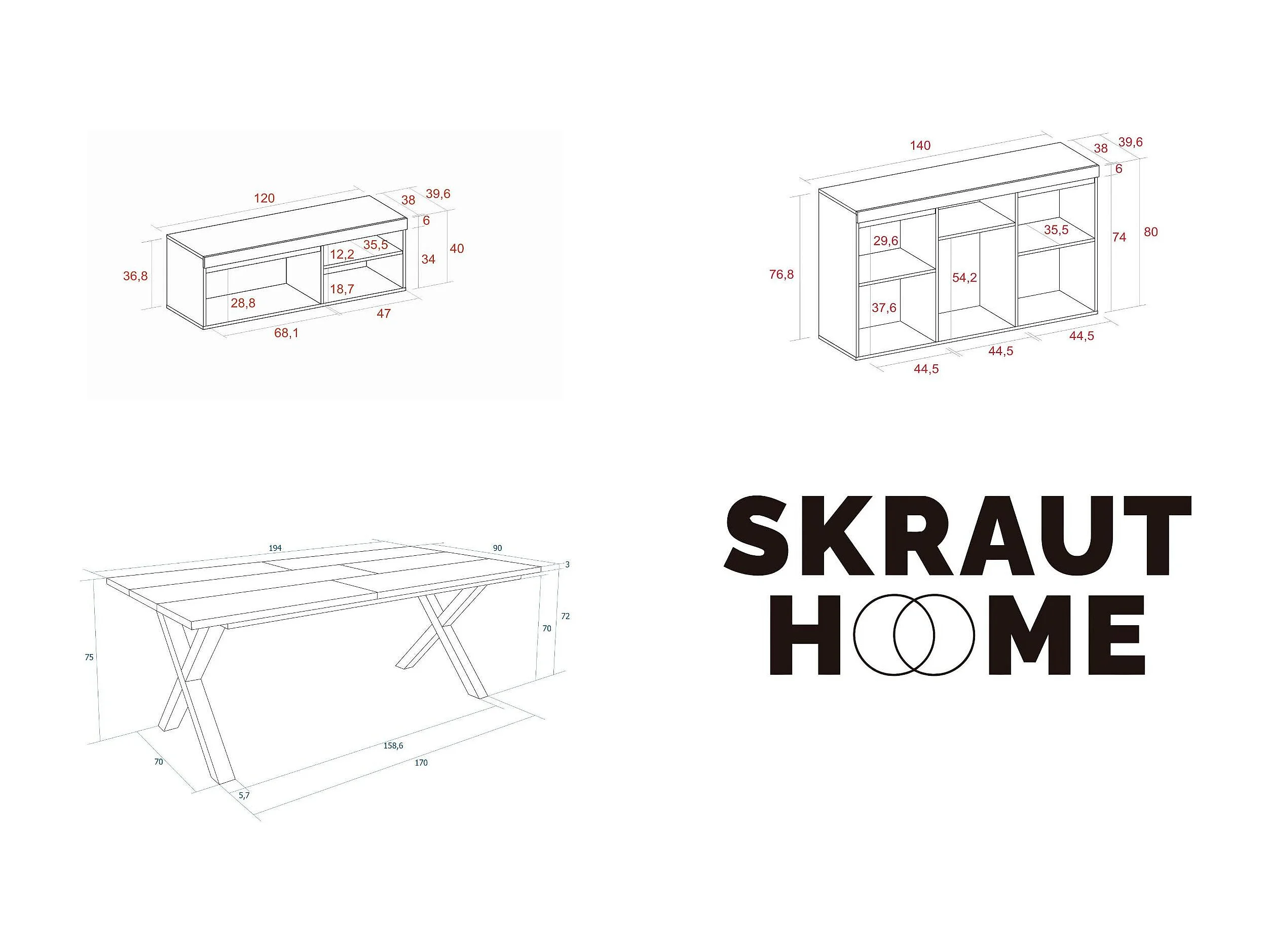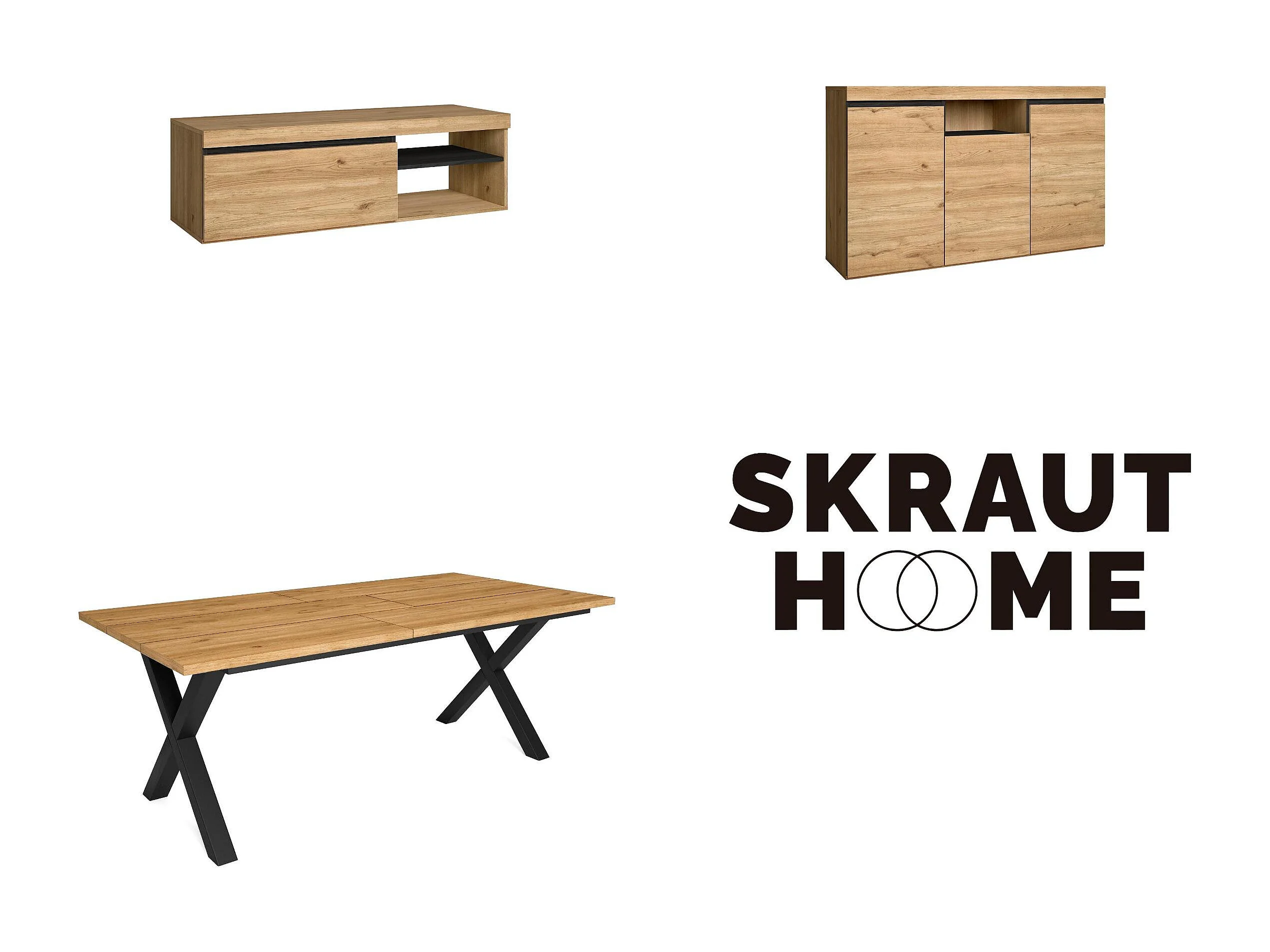 Ensemble de meubles de salon, Table 200 pieds X 10 convives, Meuble TV 120, Crédence / Buffet 140, Chêne et Noir, Style industriel