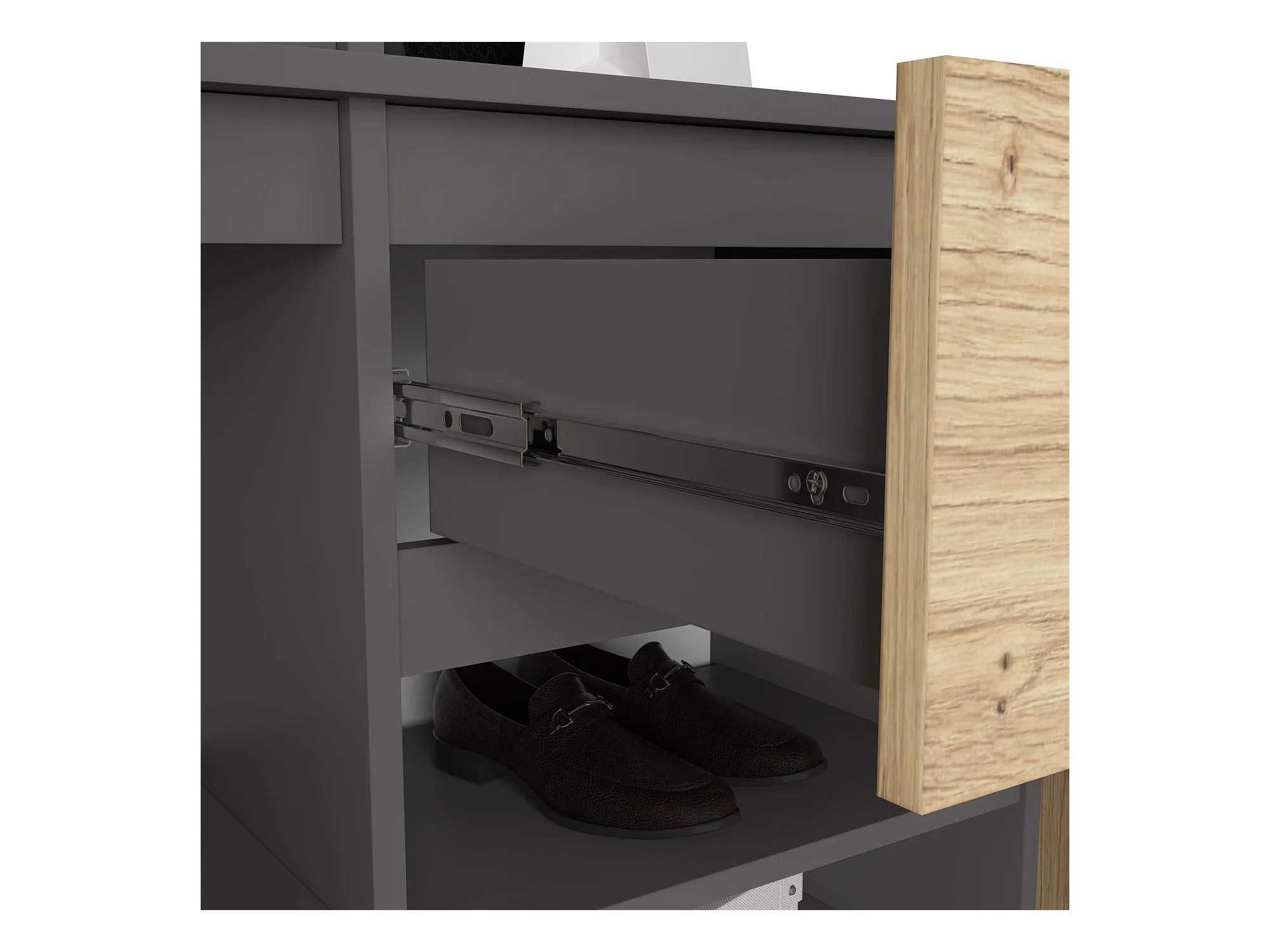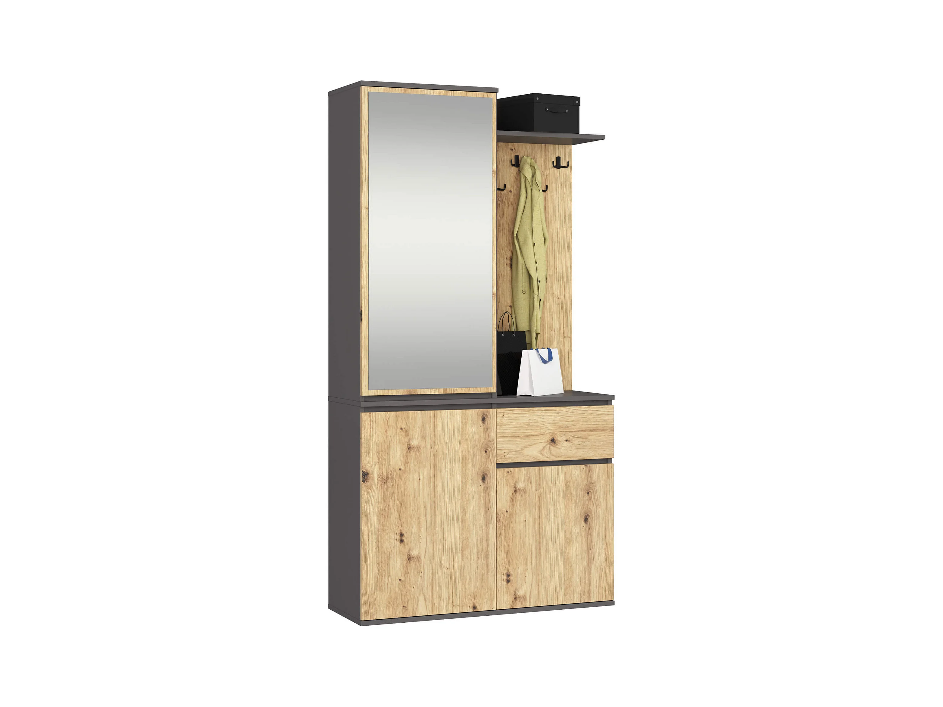 Ensemble de meubles d'entrée ENTRO Gris graphite, Chêne Artisan avec armoire et miroir 95 cm 3 portes 1 tiroir 7 étagères 95x35x183 cm