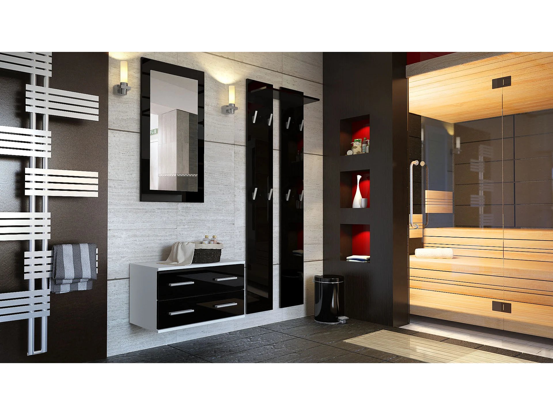 Ensemble de meubles d'entrée Kioto, Corps en Blanc mat / Façades en Noir haute brillance