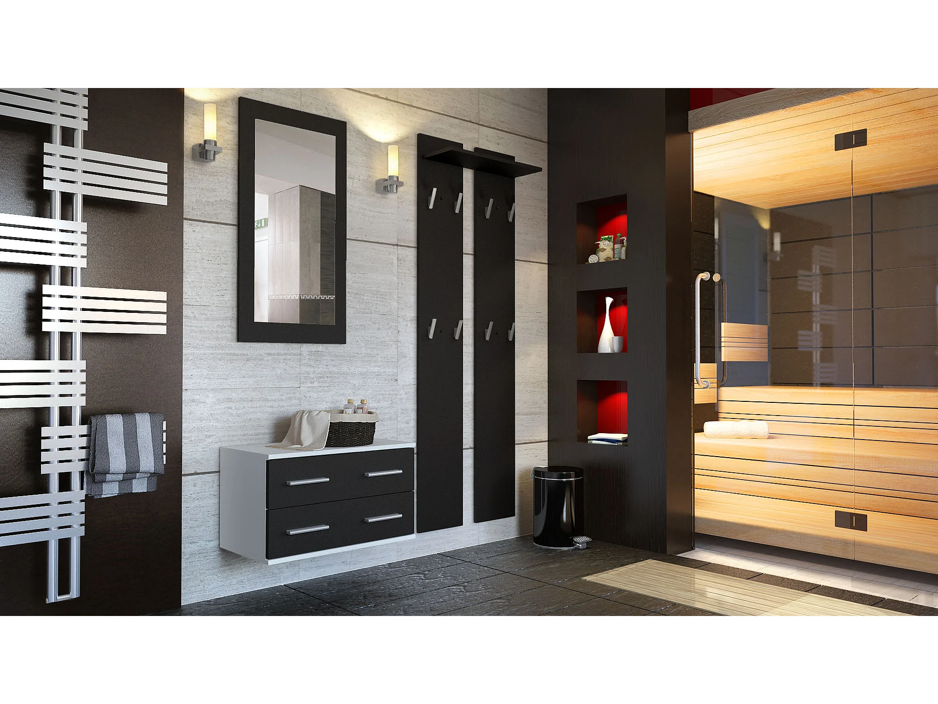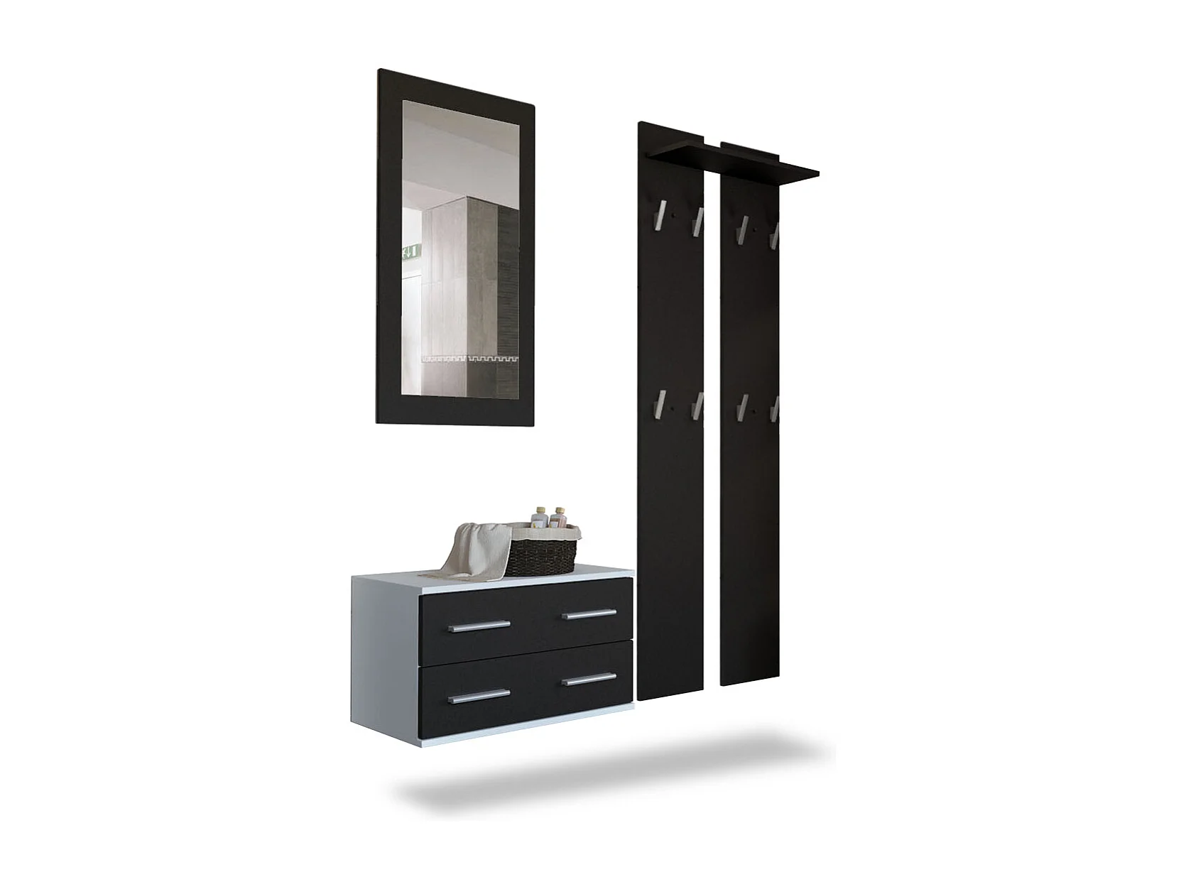 Ensemble de meubles d'entrée Kioto, Corps en Blanc mat / Façades en Noir mat