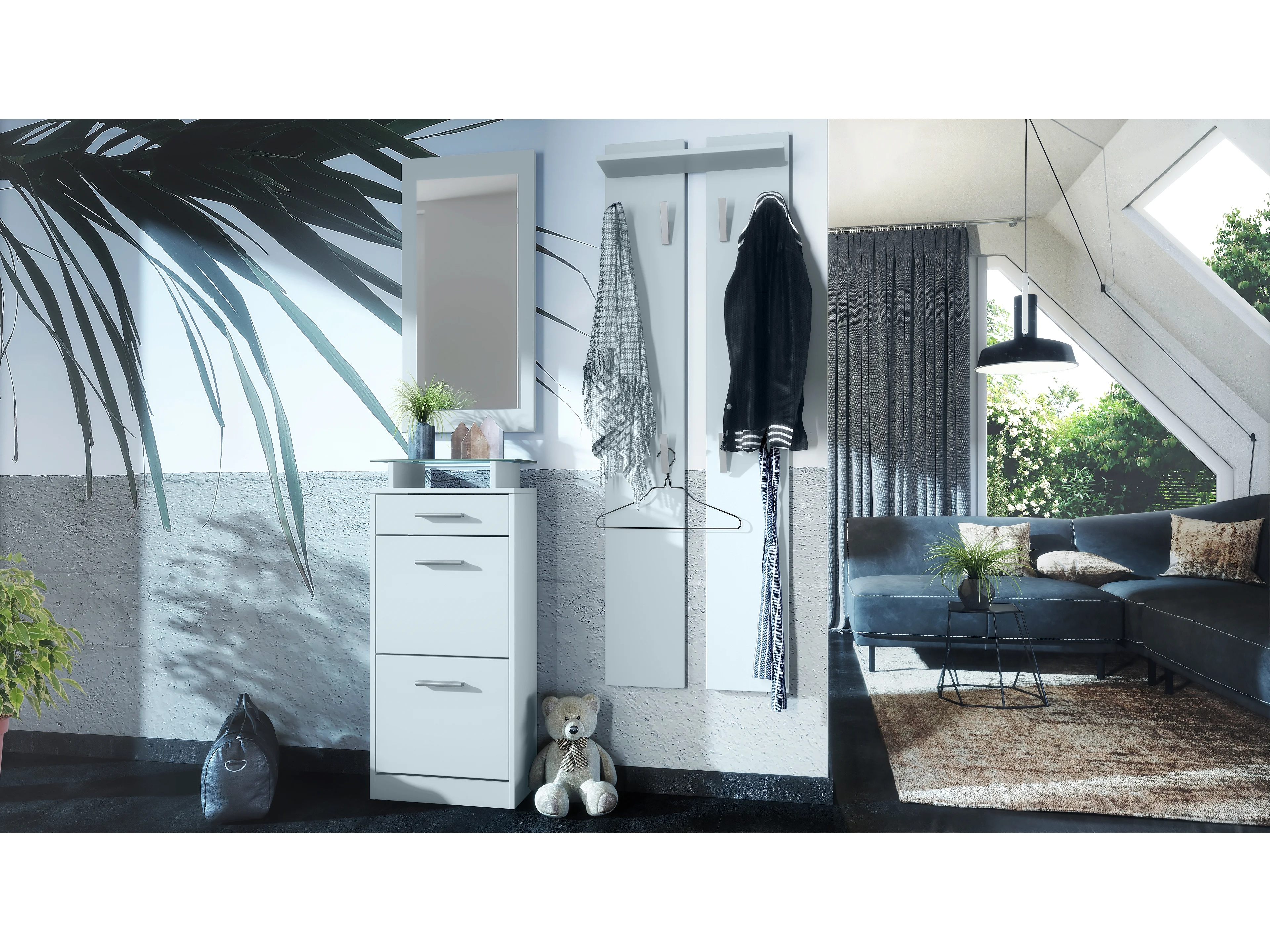 Ensemble de meubles d'entrée Loret V2 Mini, Corps en Blanc mat / Façades en Blanc mat