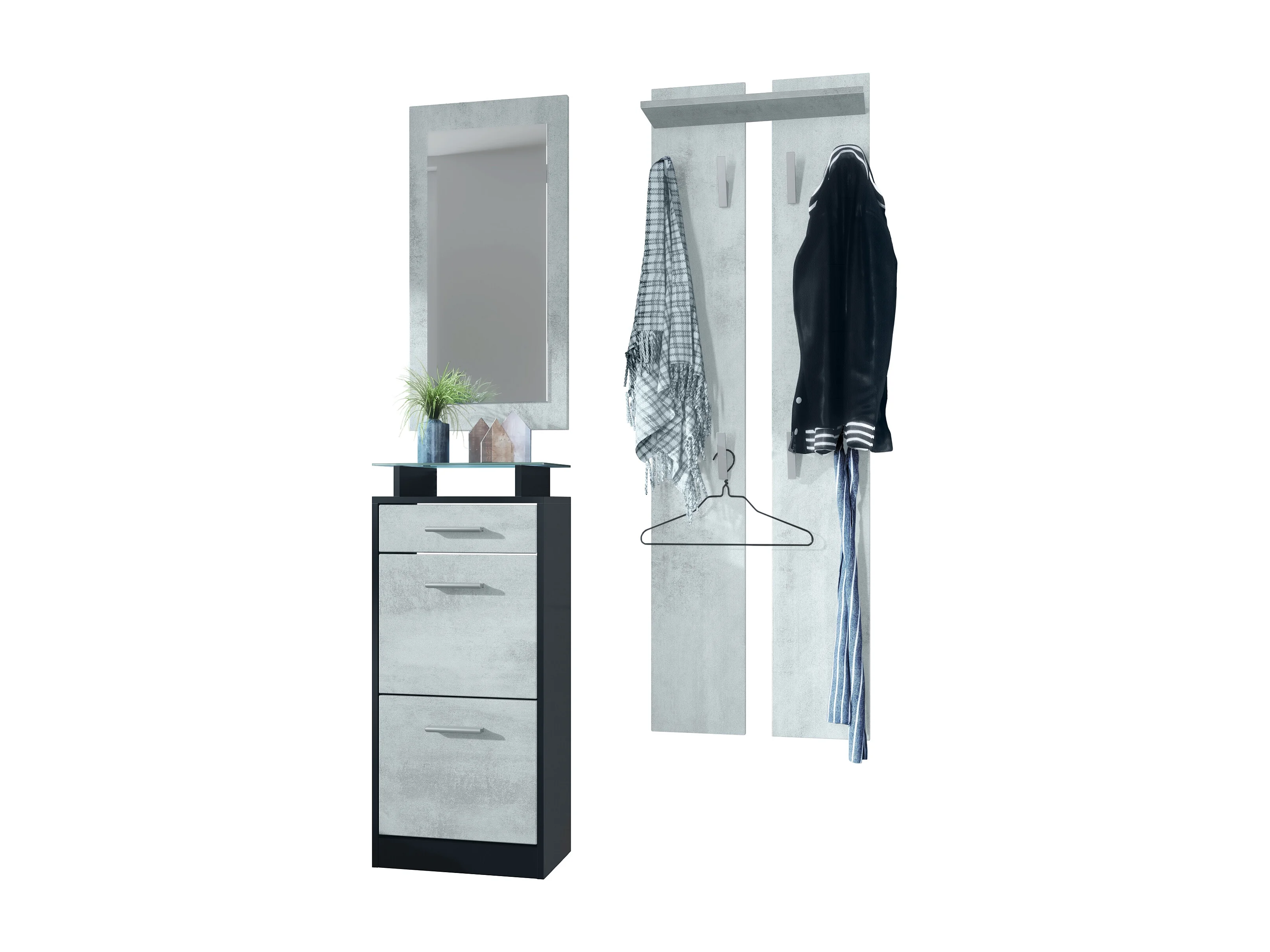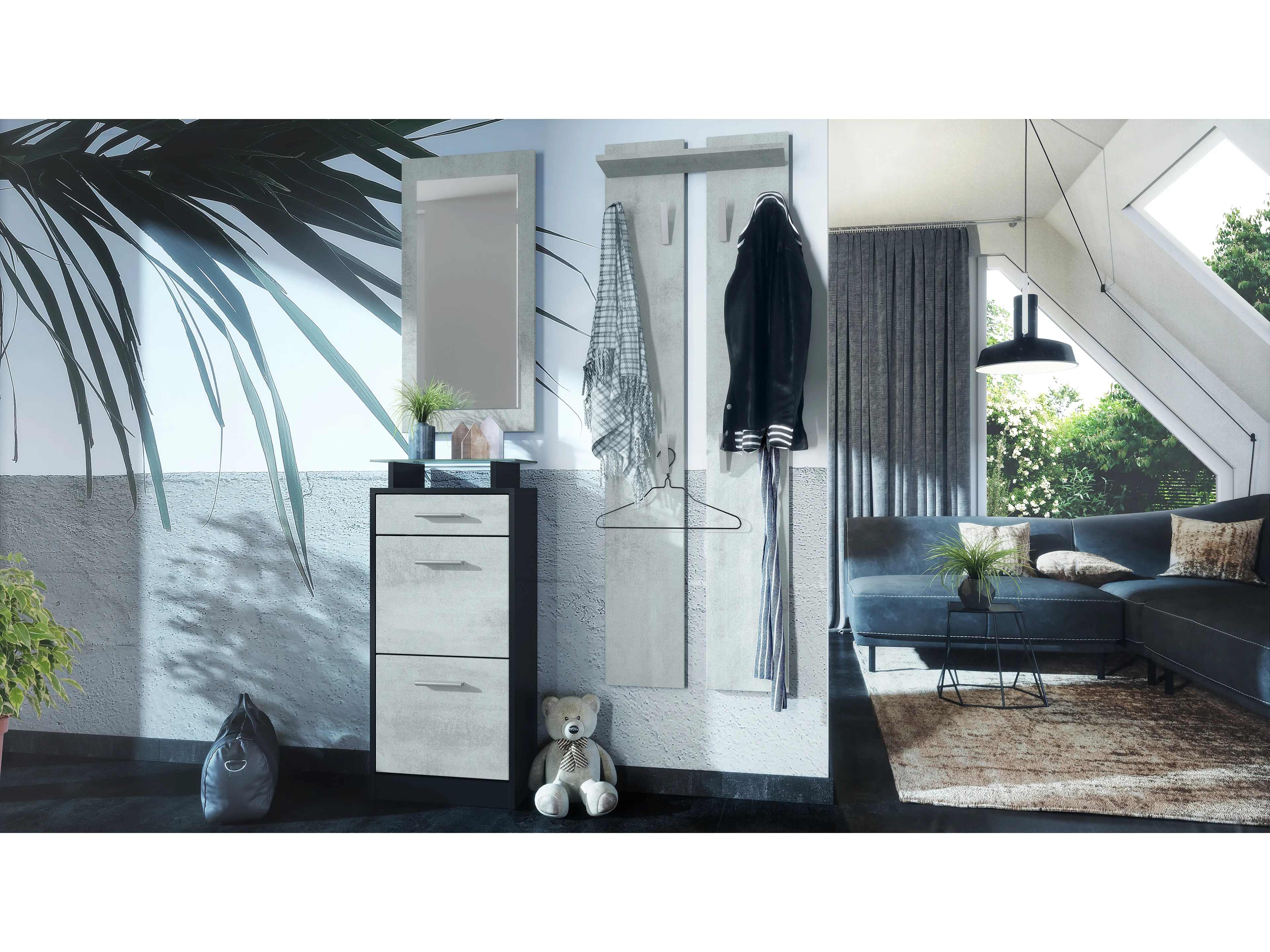Ensemble de meubles d'entrée Loret V2 Mini, Corps en Noir mat / Façades en Aspect Béton Oxyde