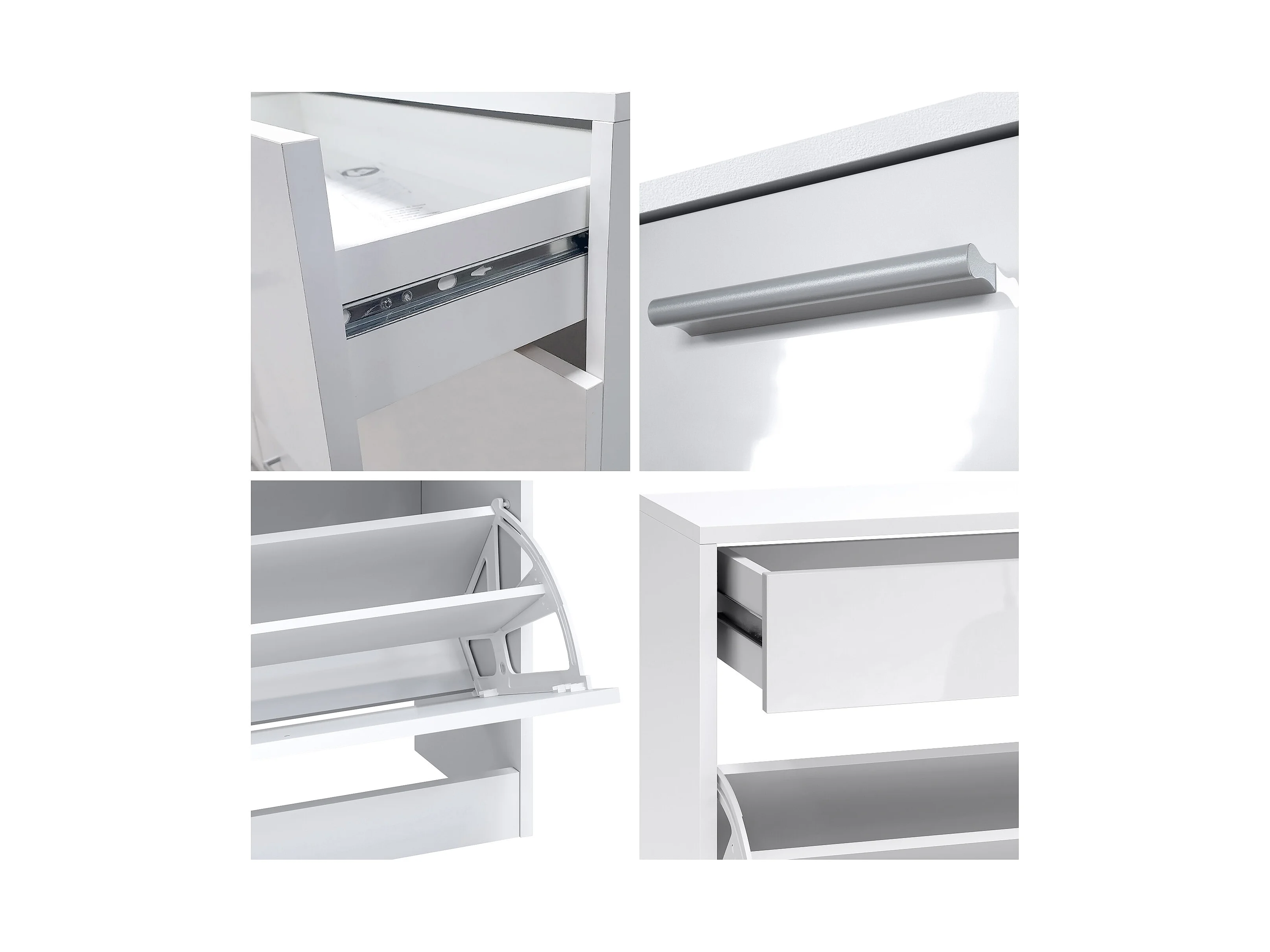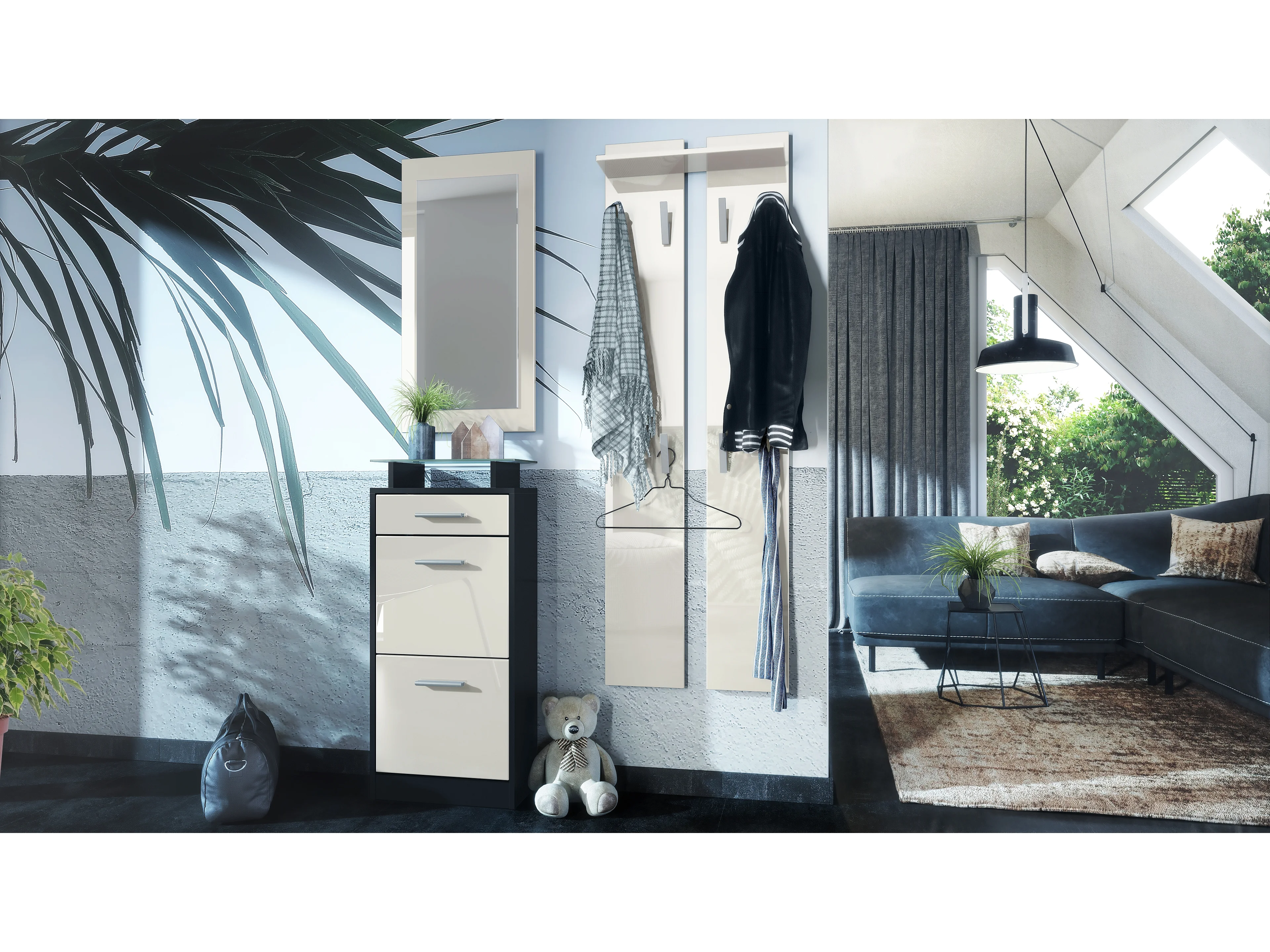 Ensemble de meubles d'entrée Loret V2 Mini, Corps en Noir mat / Façades en Crème haute brillance