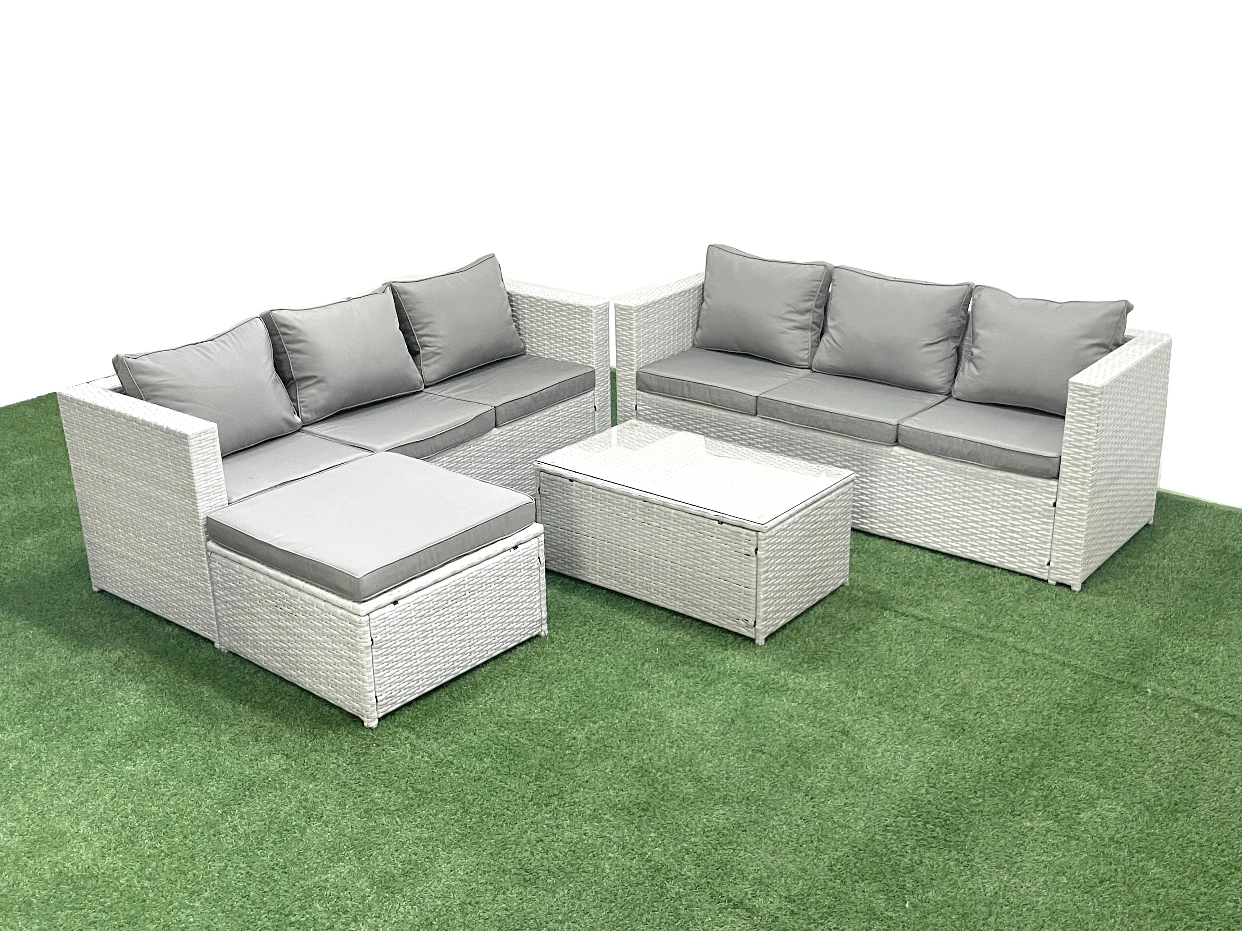 Ensemble de meubles d'extérieur en rotin 7 places avec Grand tabouret Gris clair mixte