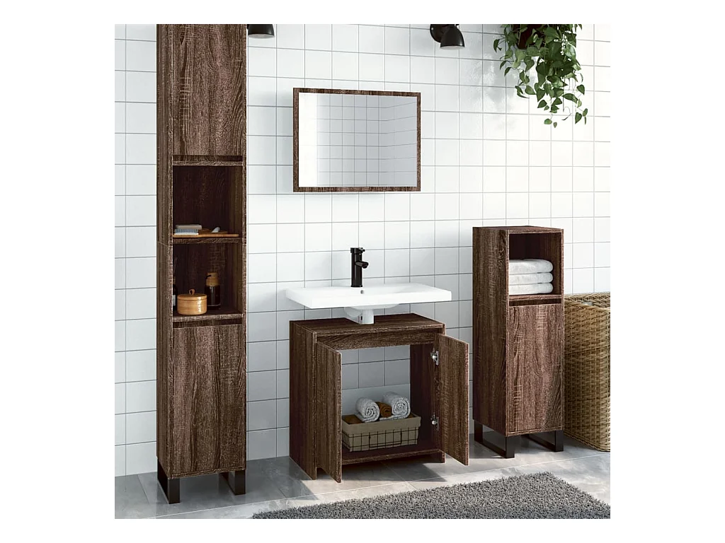 Ensemble de meubles salle de bain 3 pcs Chêne fumé FR20047