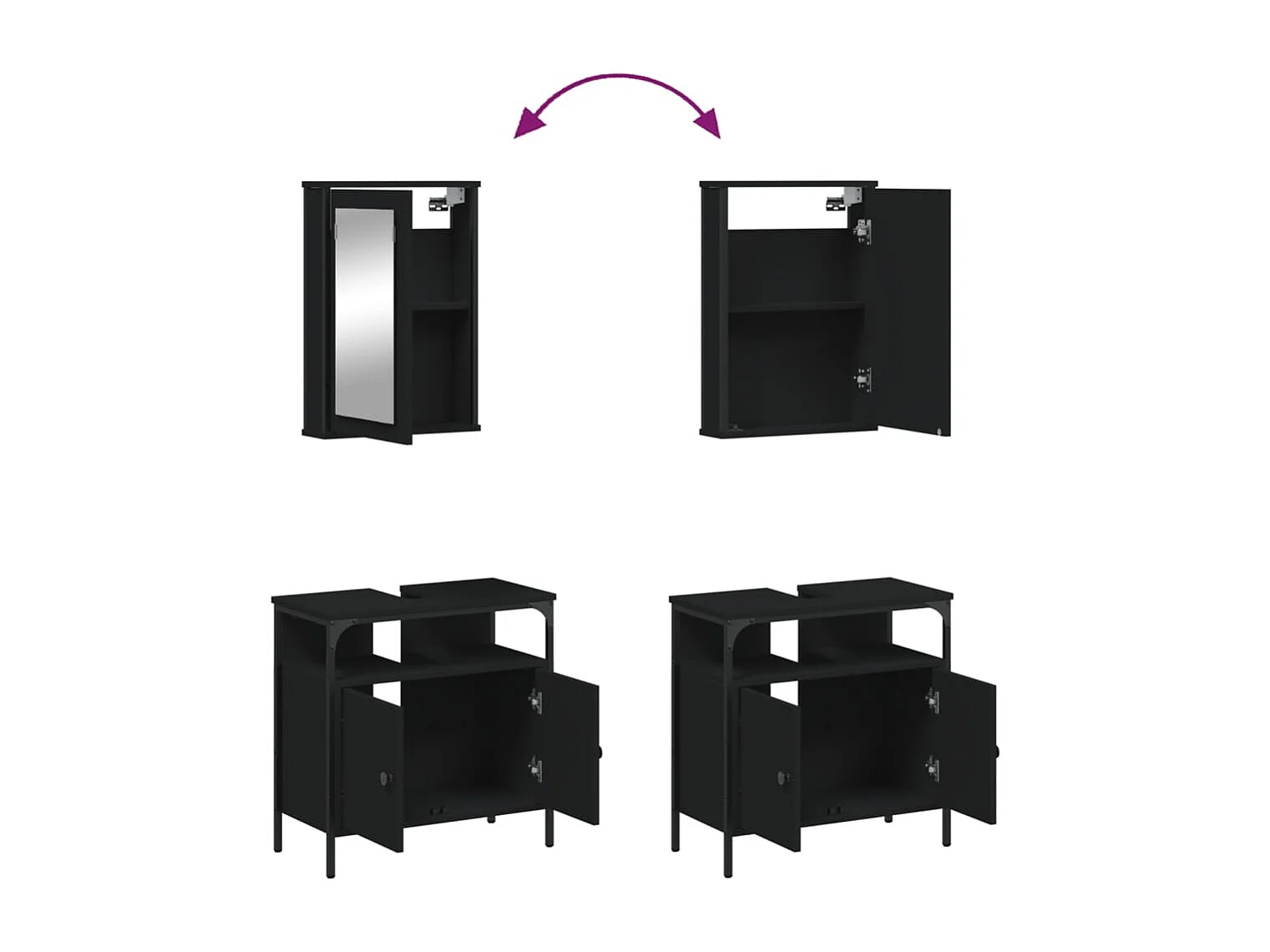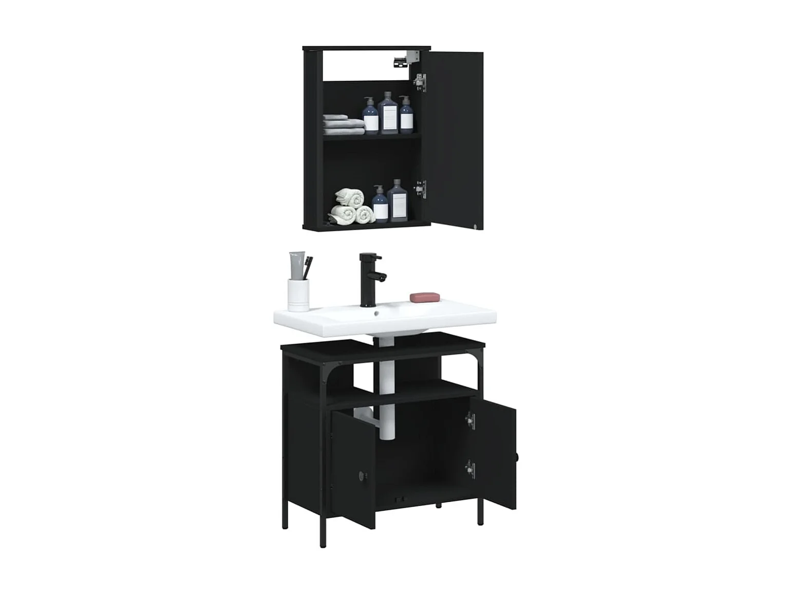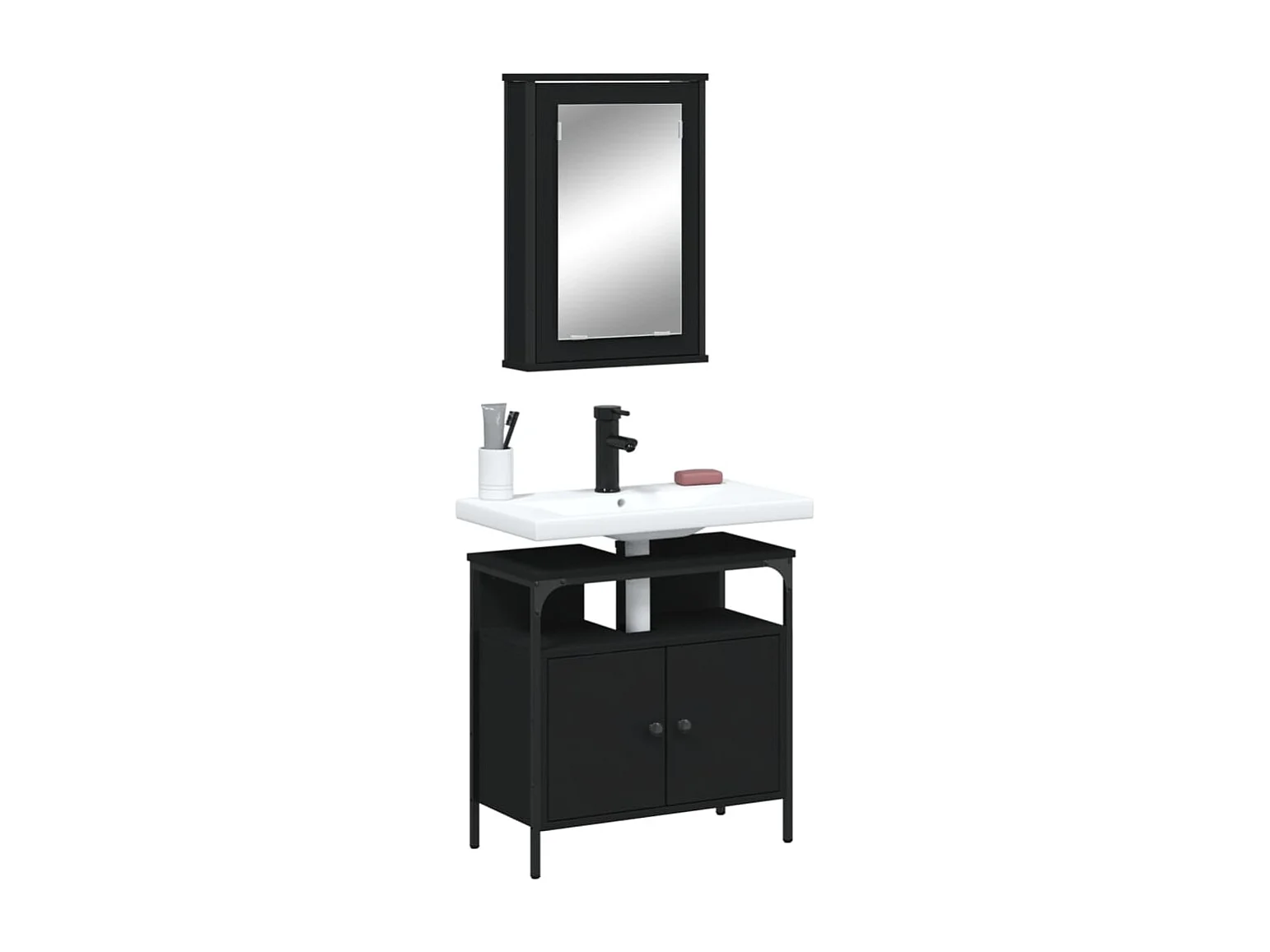 Ensemble de meubles salle de bain 2 pcs noir bois d'ingénierie