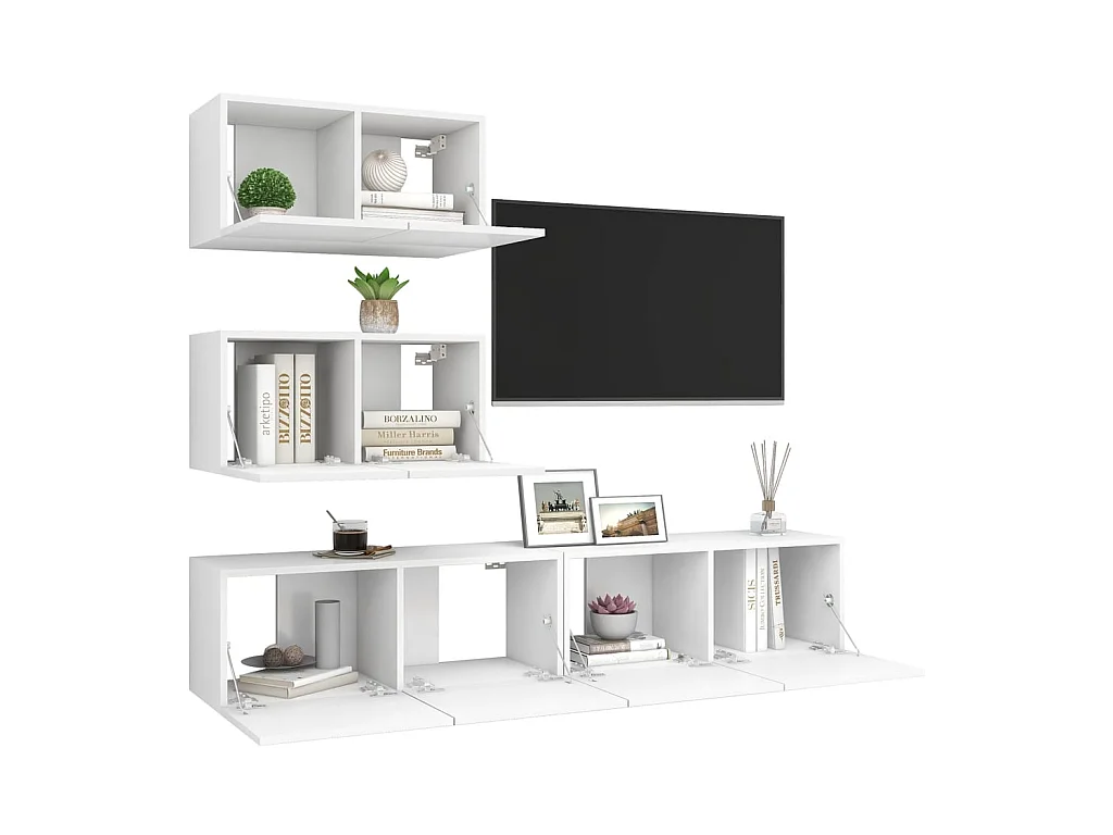 Meubles TV 4 pcs Blanc Aggloméré BE43549