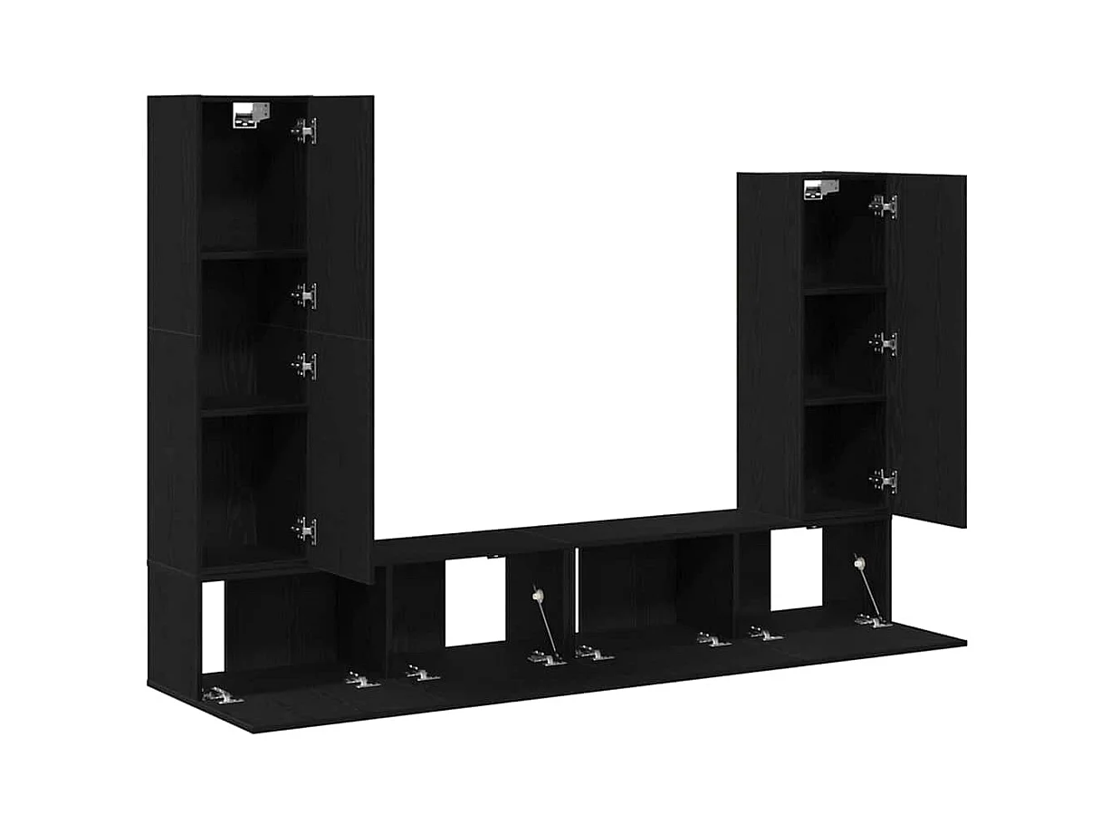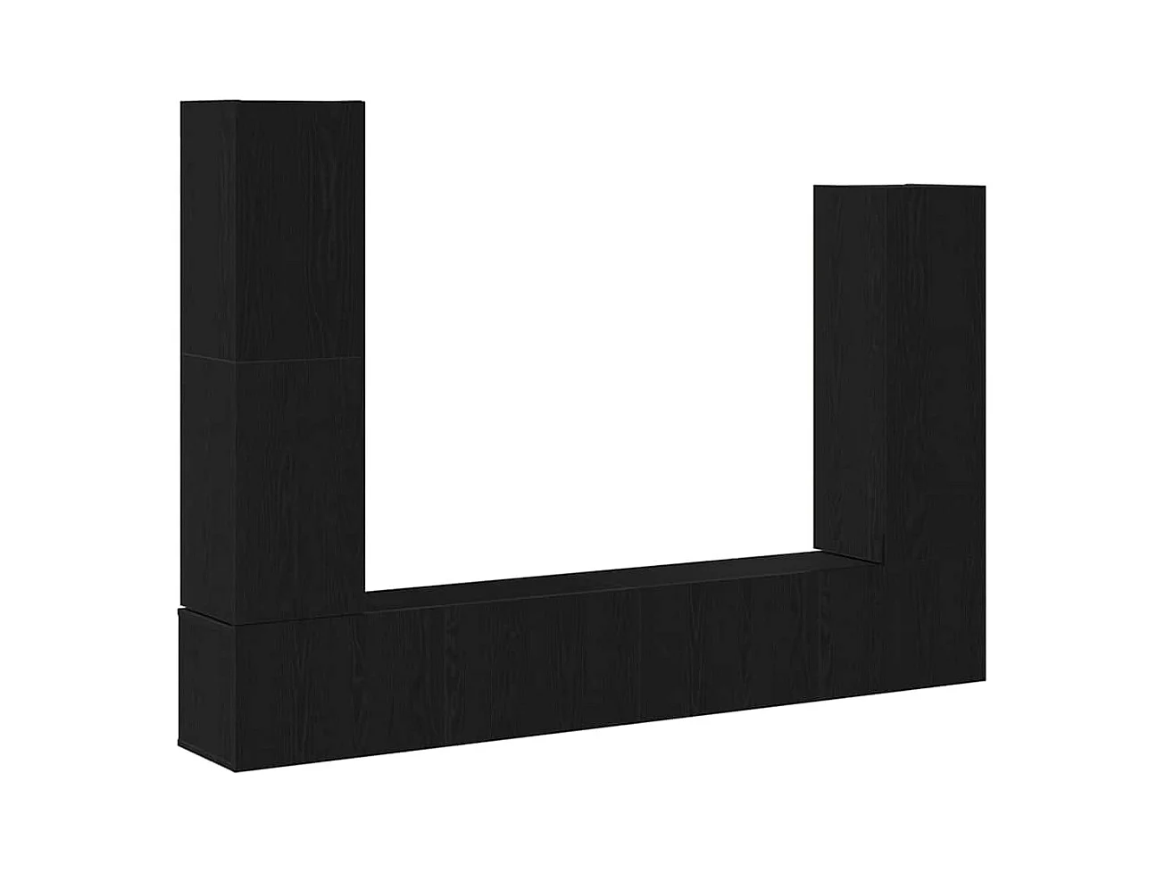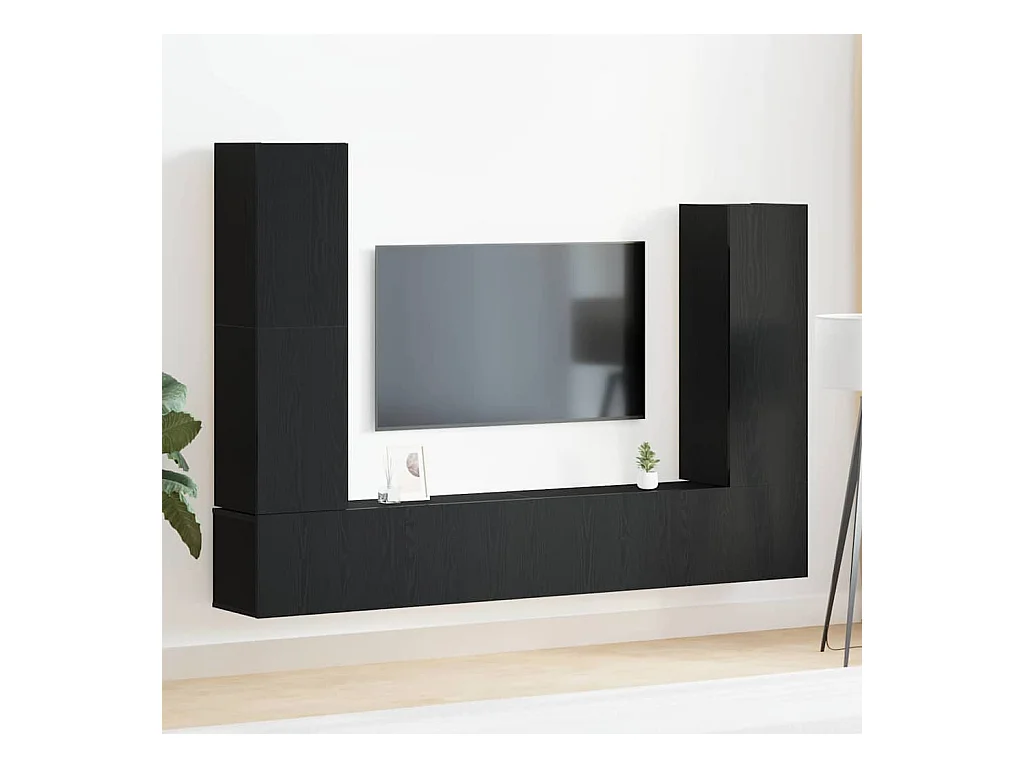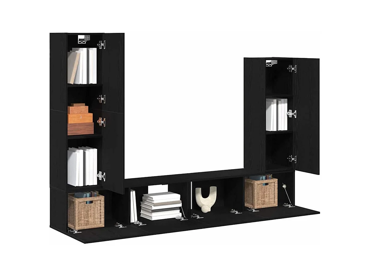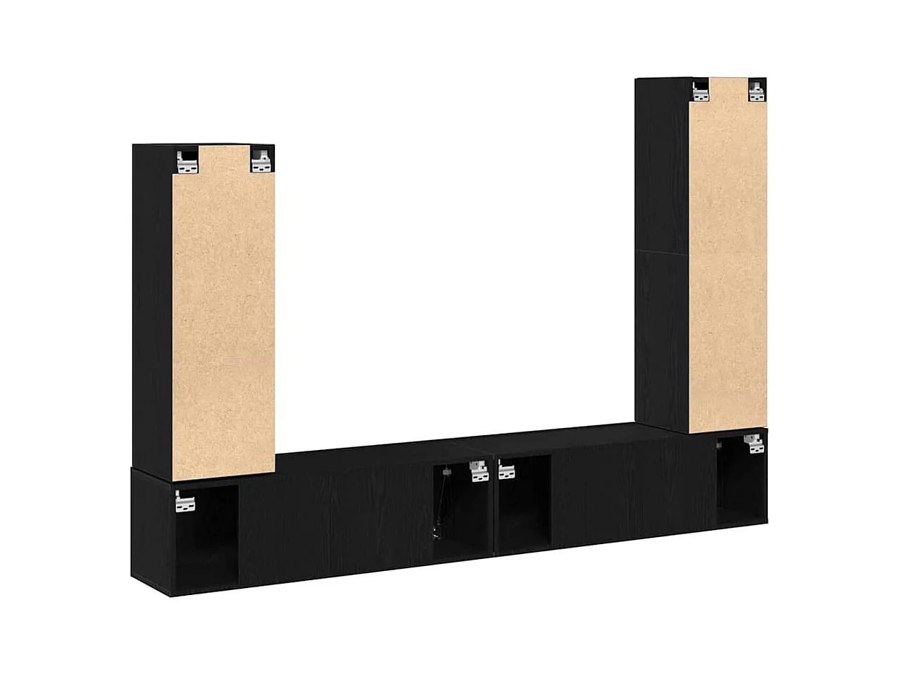 Ensemble de meubles TV mural en 4 pièces, noir et chêne