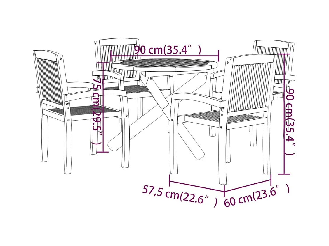 Ensemble de salle à bois marron 60 x 57.5 x 90 cm 02_0013761