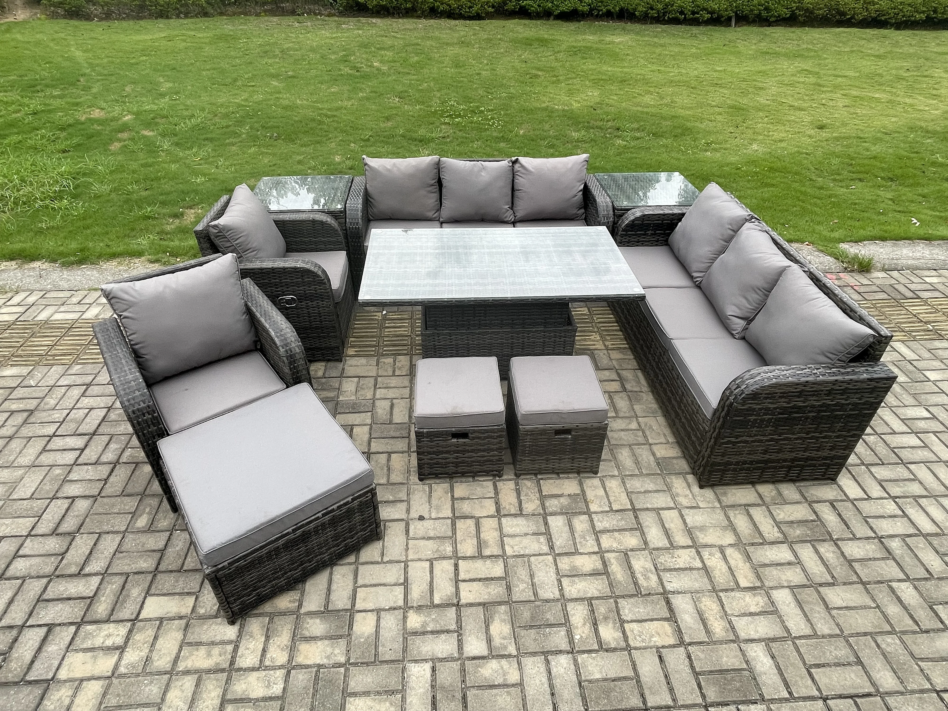 Ensemble de salle à manger jardin en rotin ave Table à manger réglable en hauteur 2 Chaises inclinable Canapé 3 Tabourets 2 Table d'appoint