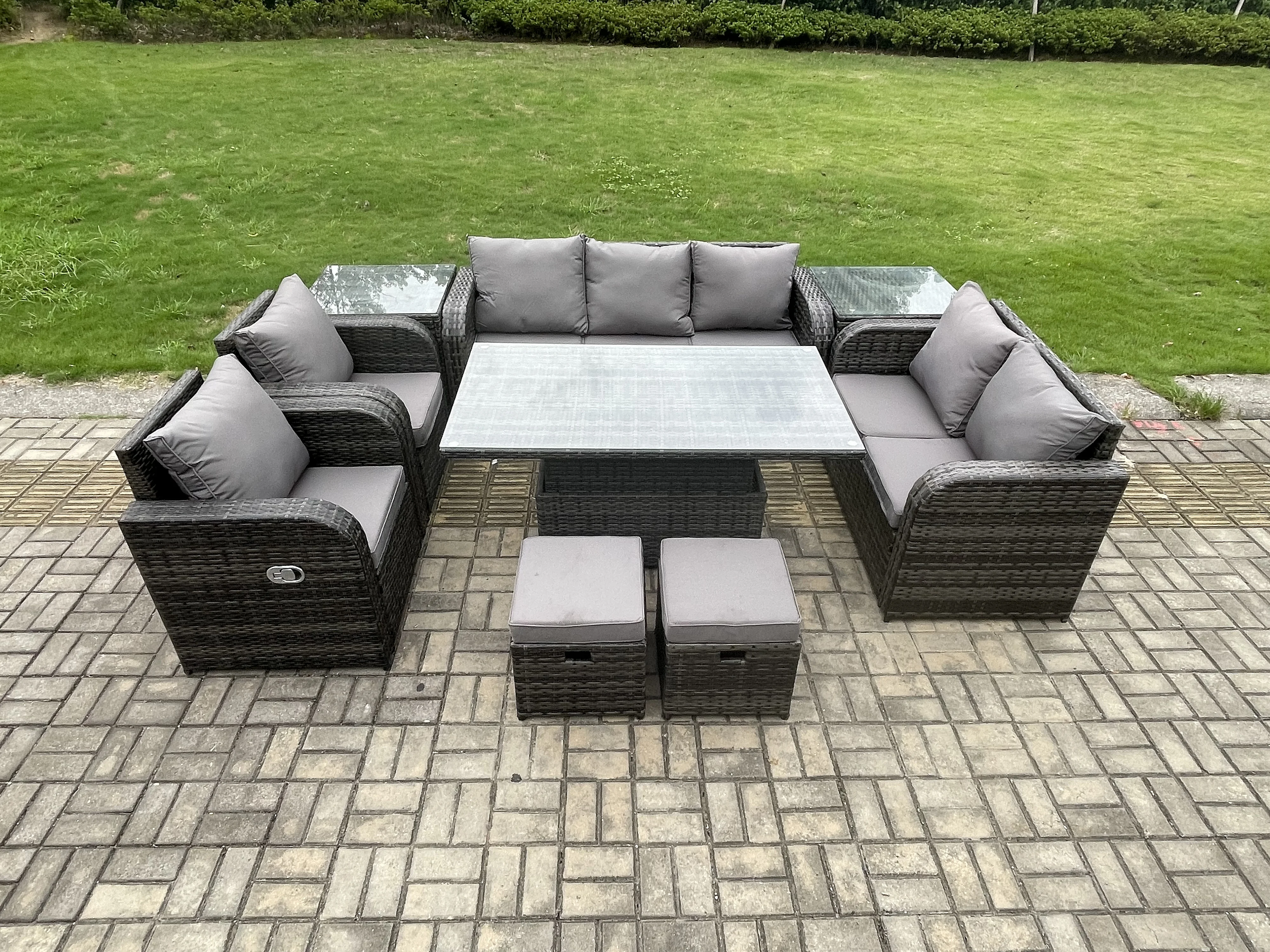 Ensemble de salle à manger jardin en rotin ave Table à manger réglable en hauteur 2 Chaises inclinable Canapé d'amour 2 Tabourets 2 Table d'appoint