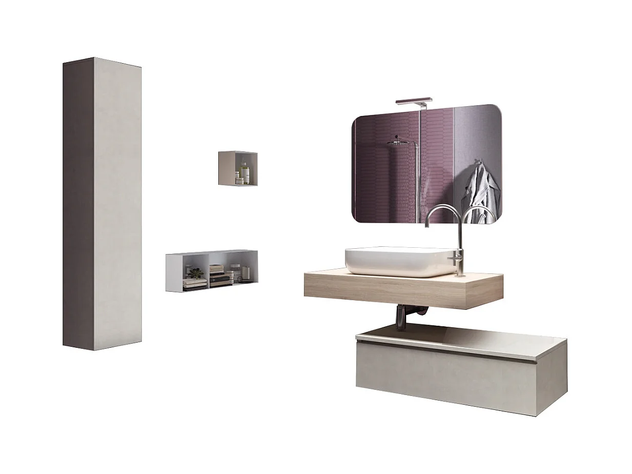 Ensemble de salle de bain 5 pièces ASTRA tabac clair/ pierre blanche