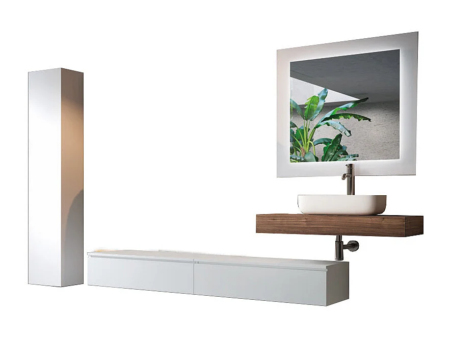 Ensemble de salle de bain 8 pièces ASTRA noyer/blanc mat