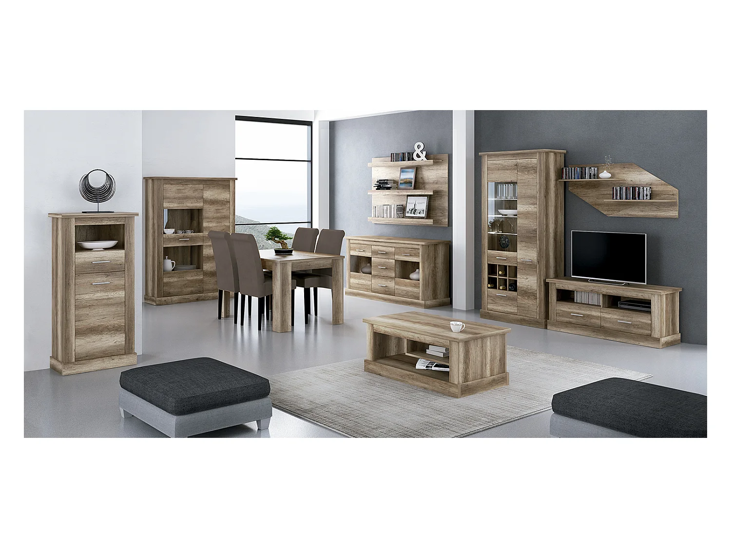 Ensemble de salon complet, meuble TV, étagère murale, Buffet, table à manger, vitrine, table basse coloris chêne vieilli