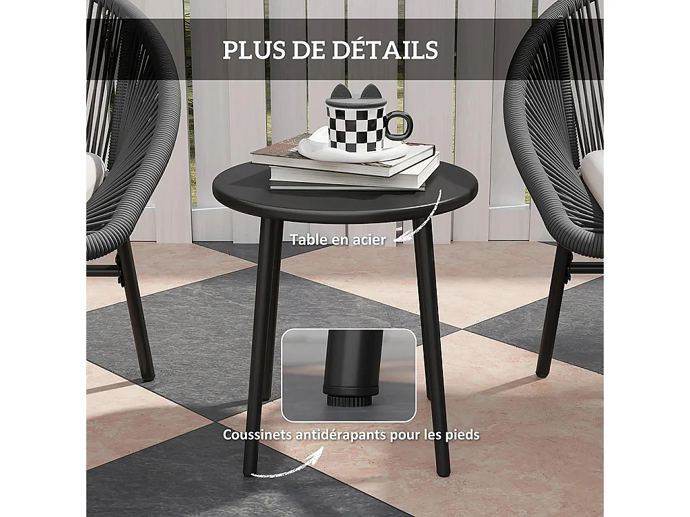 Ensemble de salon de jardin avec coussins moelleux, en corde tressée en résine et acier époxy.