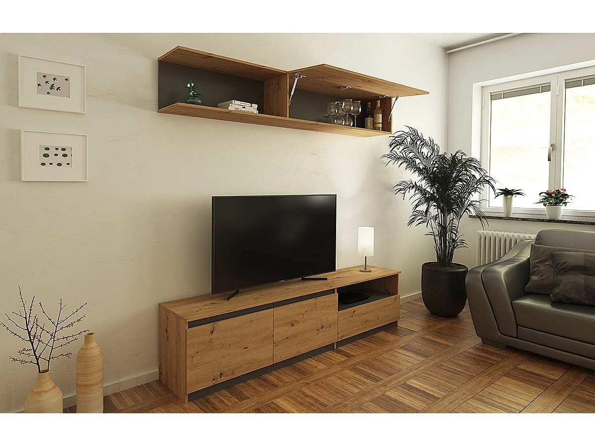 Ensemble de salon, ensemble de séjour coloris chêne, Gris