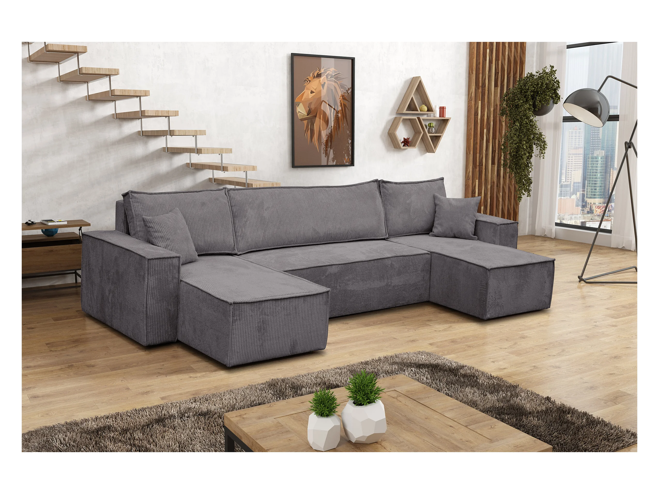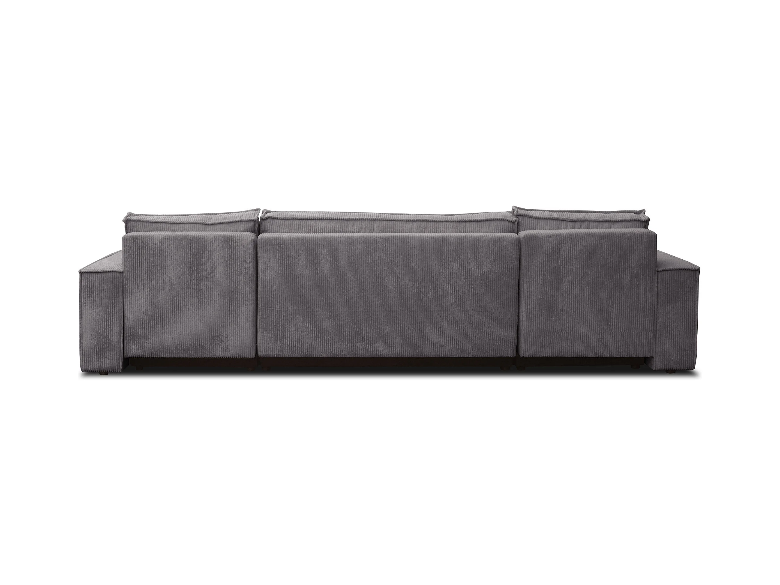Ensemble de salon Hugo U, canapé en U avec fonction couchage et coffre de rangement, couleur : gris foncé, tissu cordé