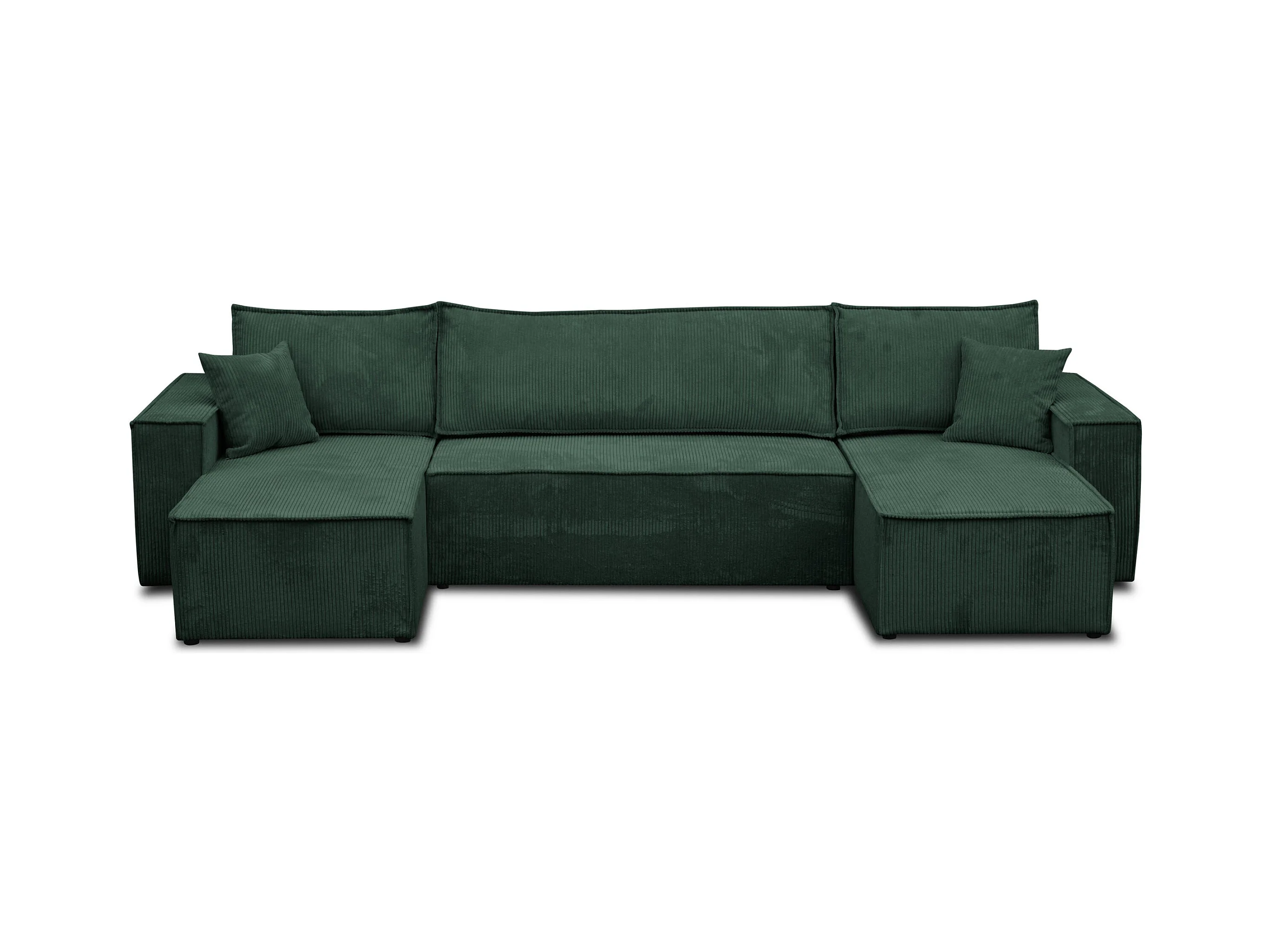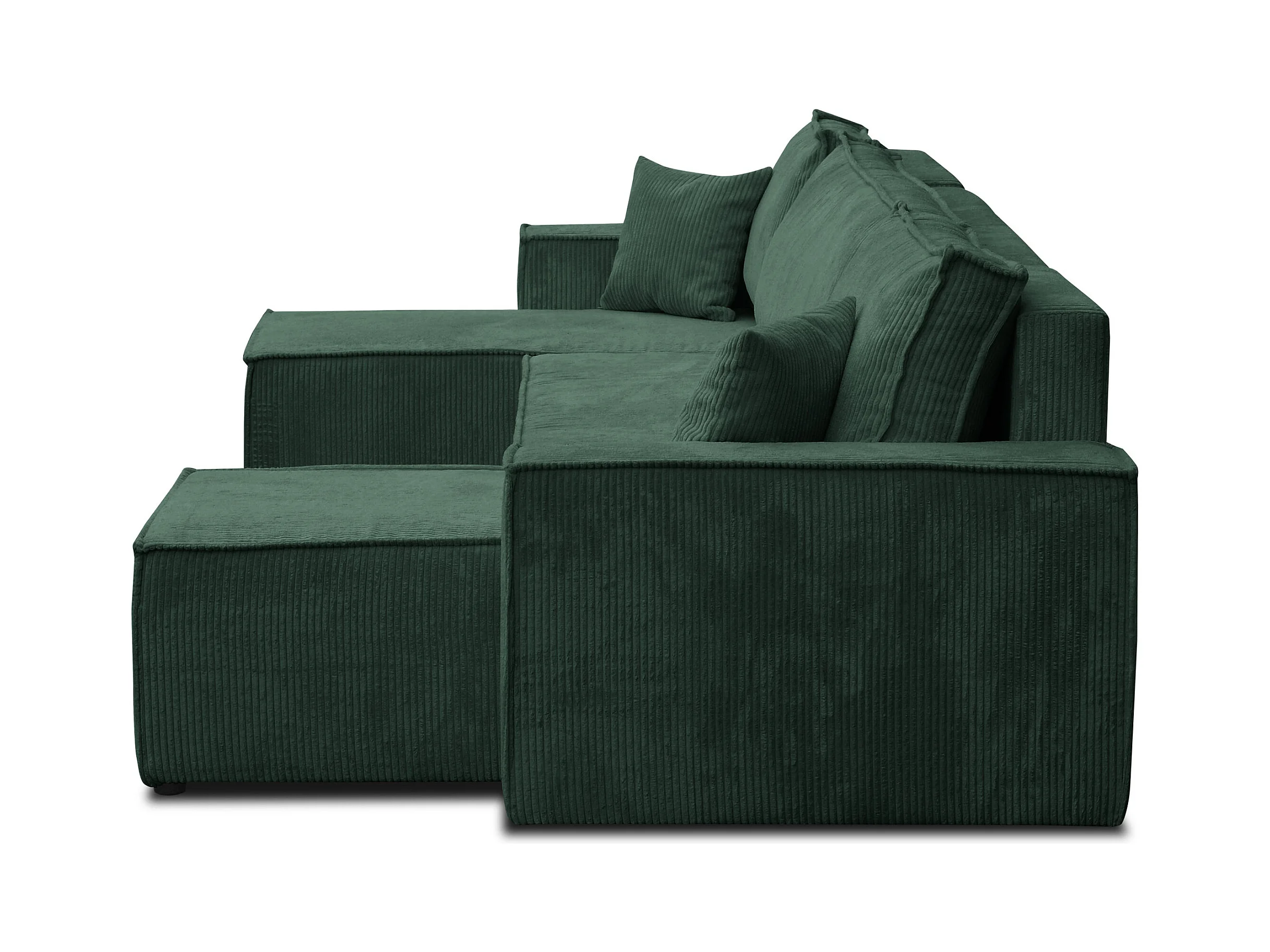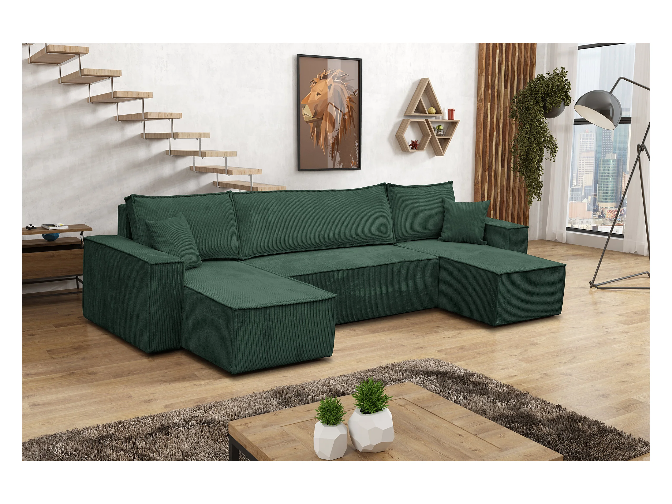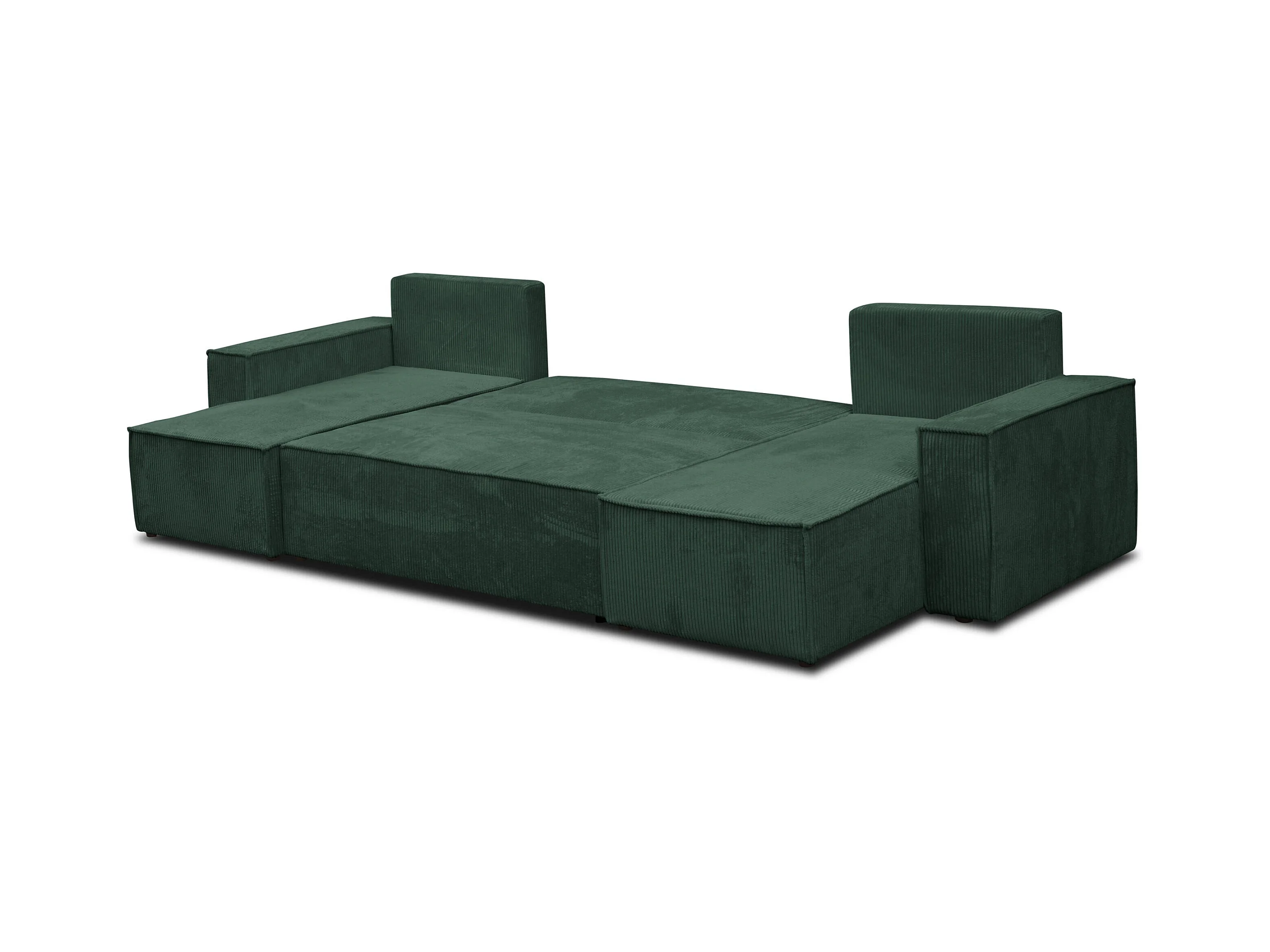 Ensemble de salon Hugo U, canapé en U avec fonction couchage et coffre de rangement, couleur : vert, tissu cordé