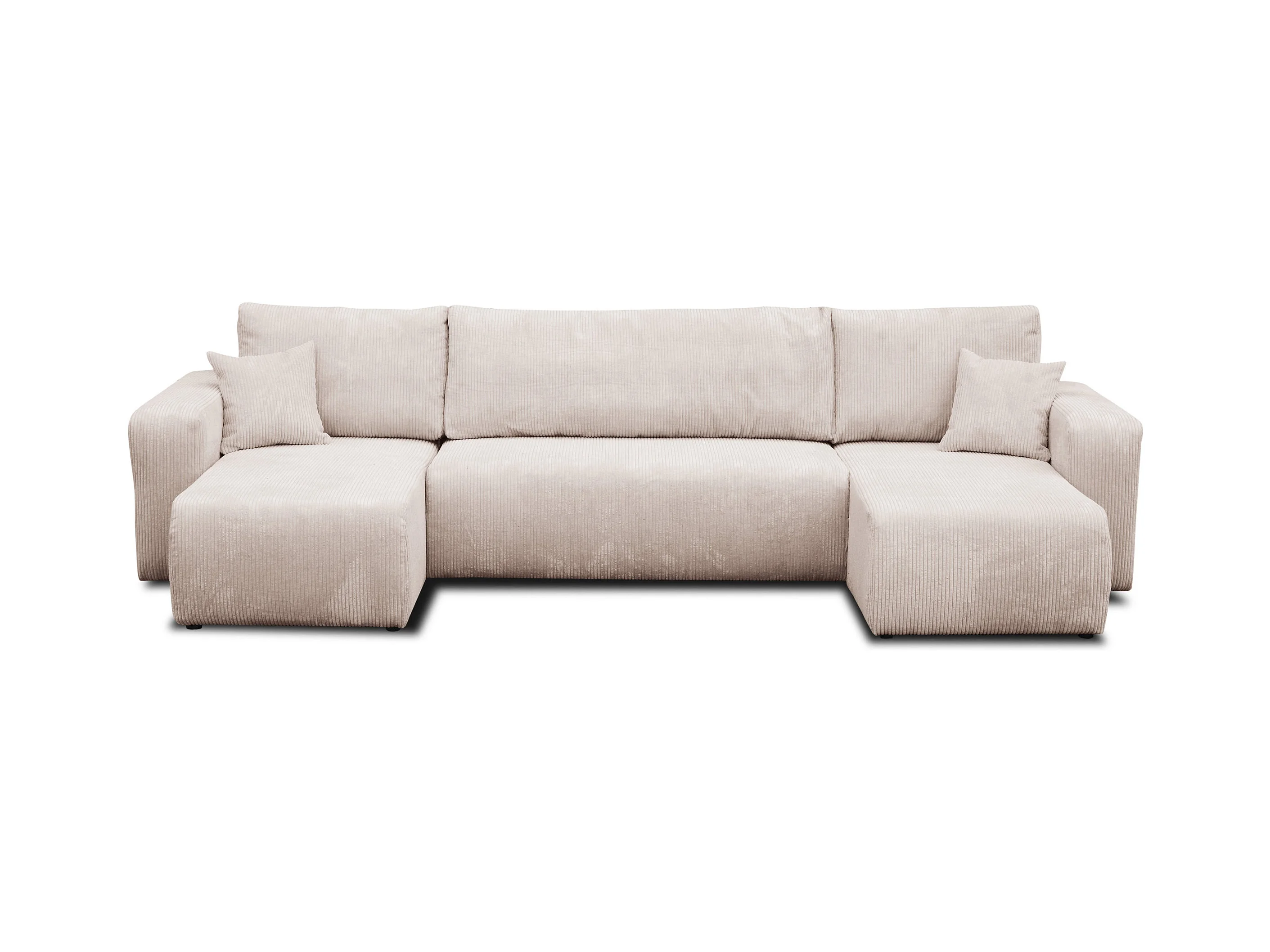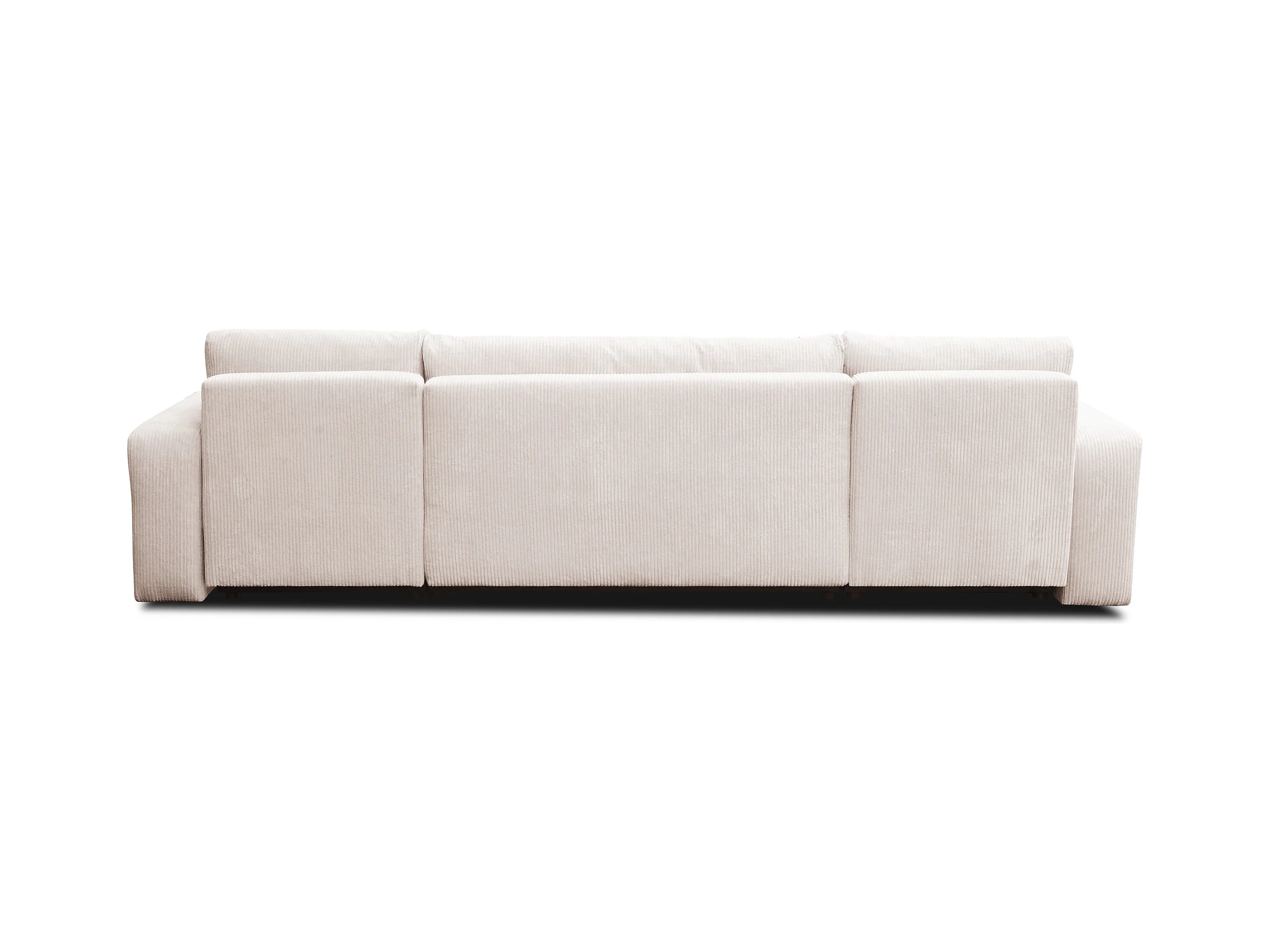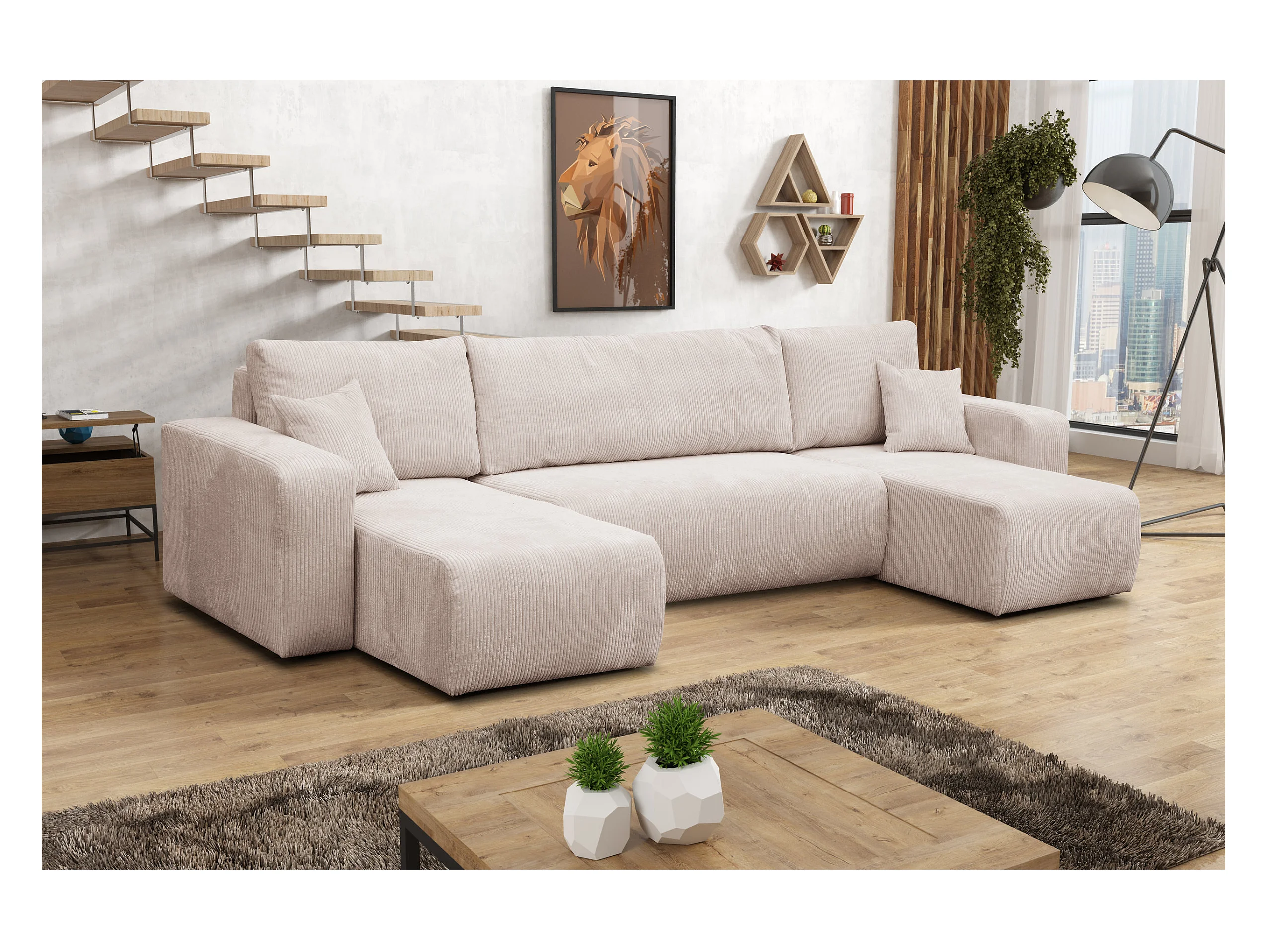 Ensemble de salon Luna U, canapé en U avec fonction couchage et coffre de rangement, couleur : beige, tissu cordé