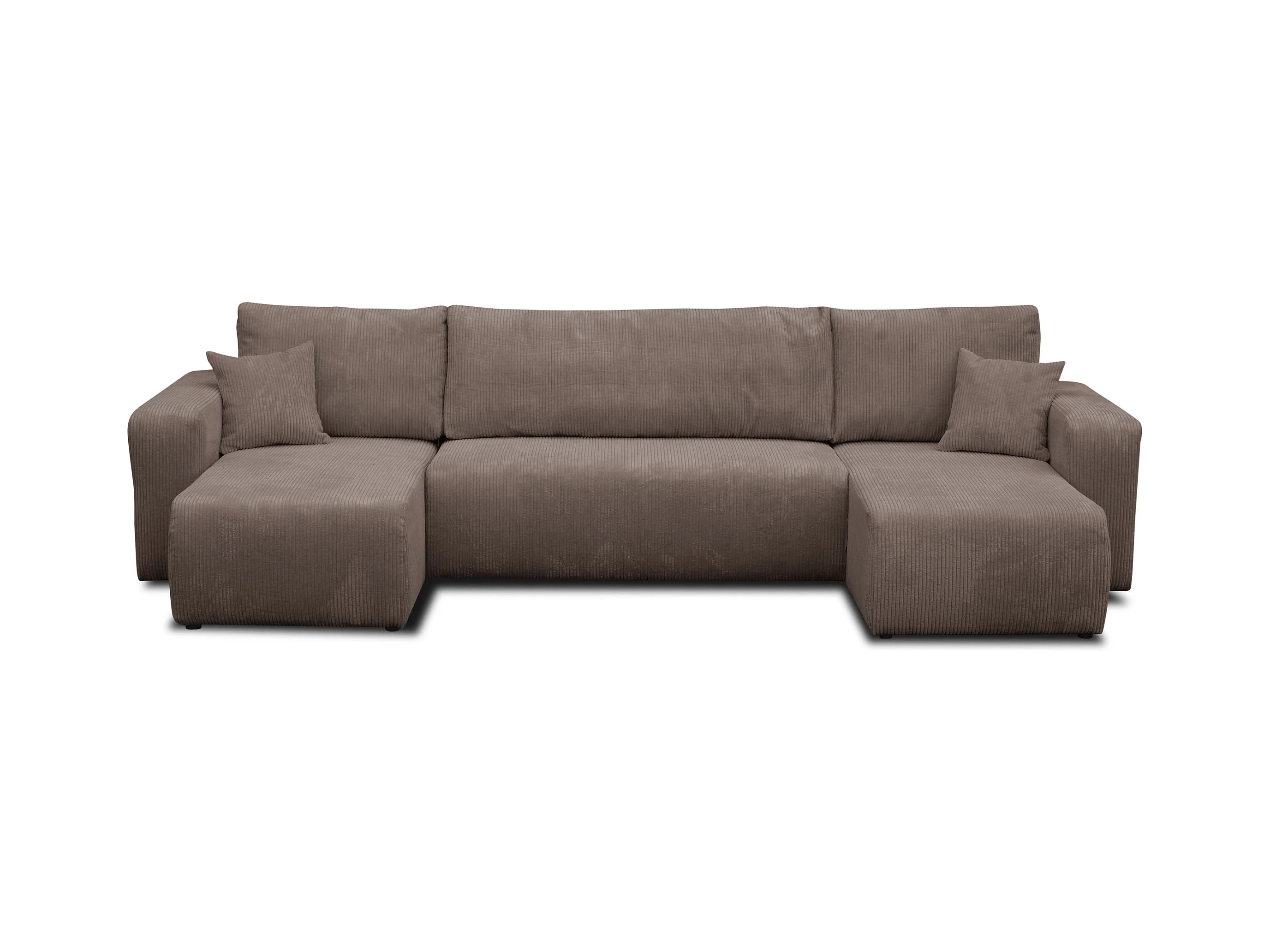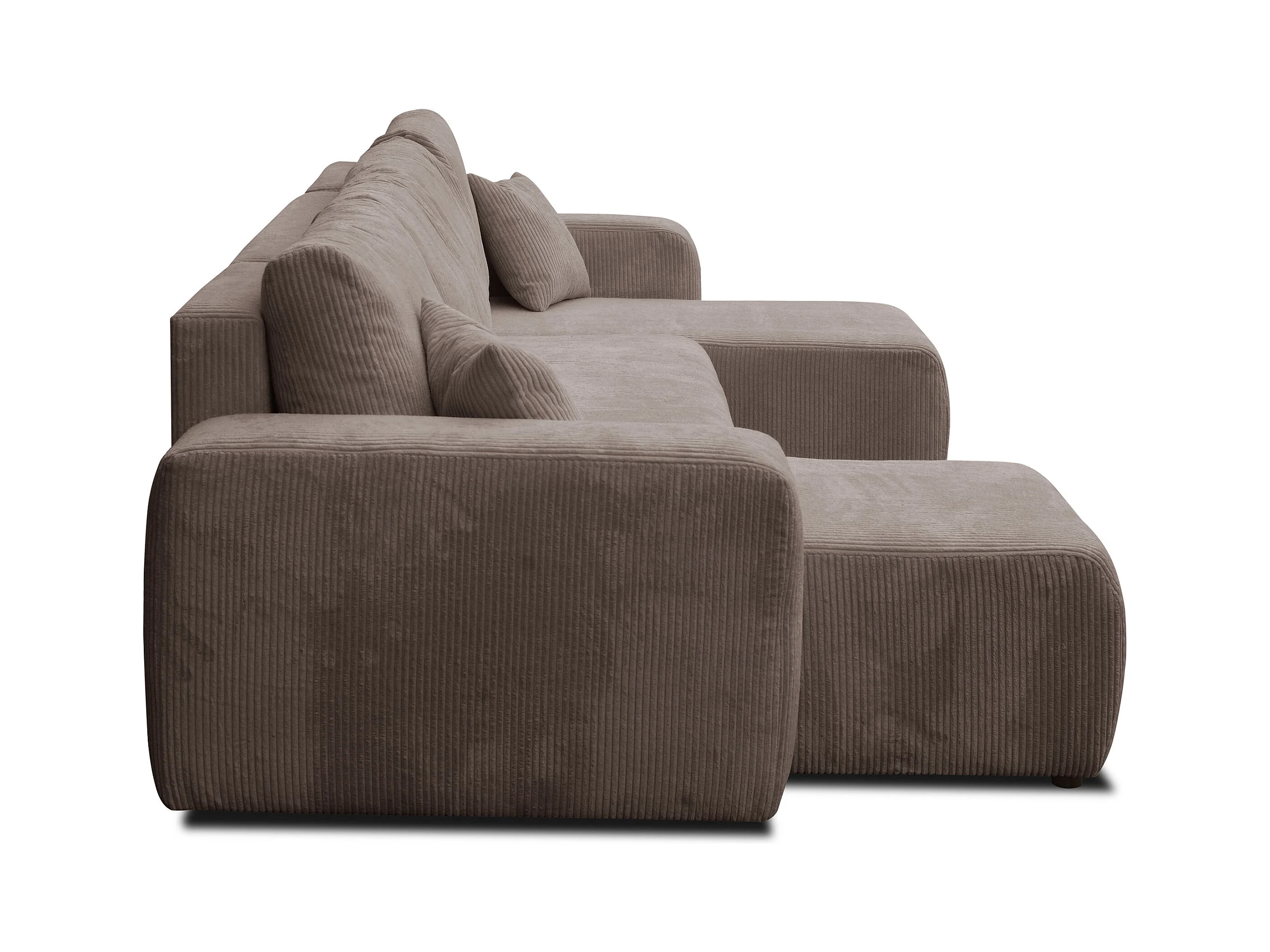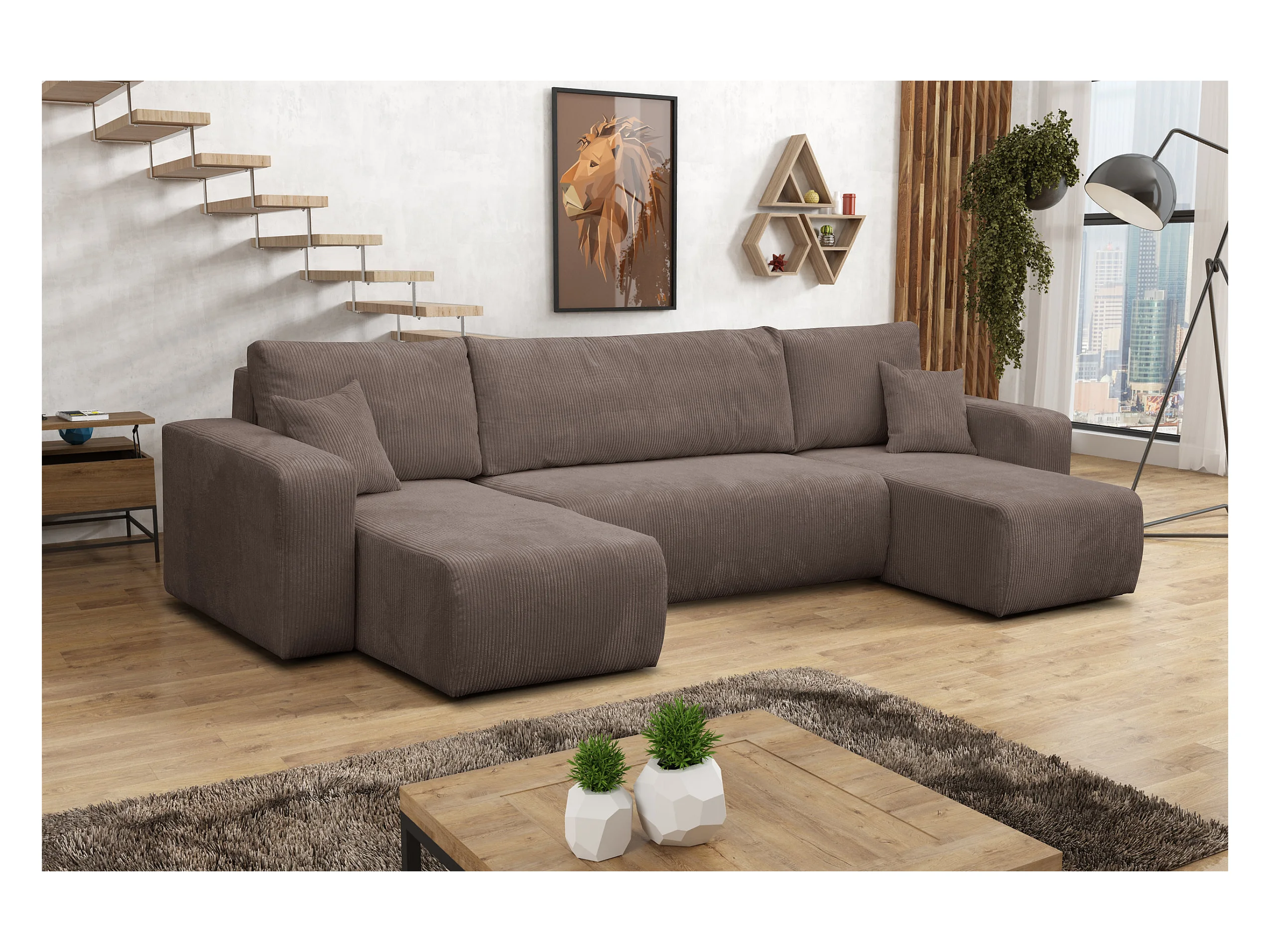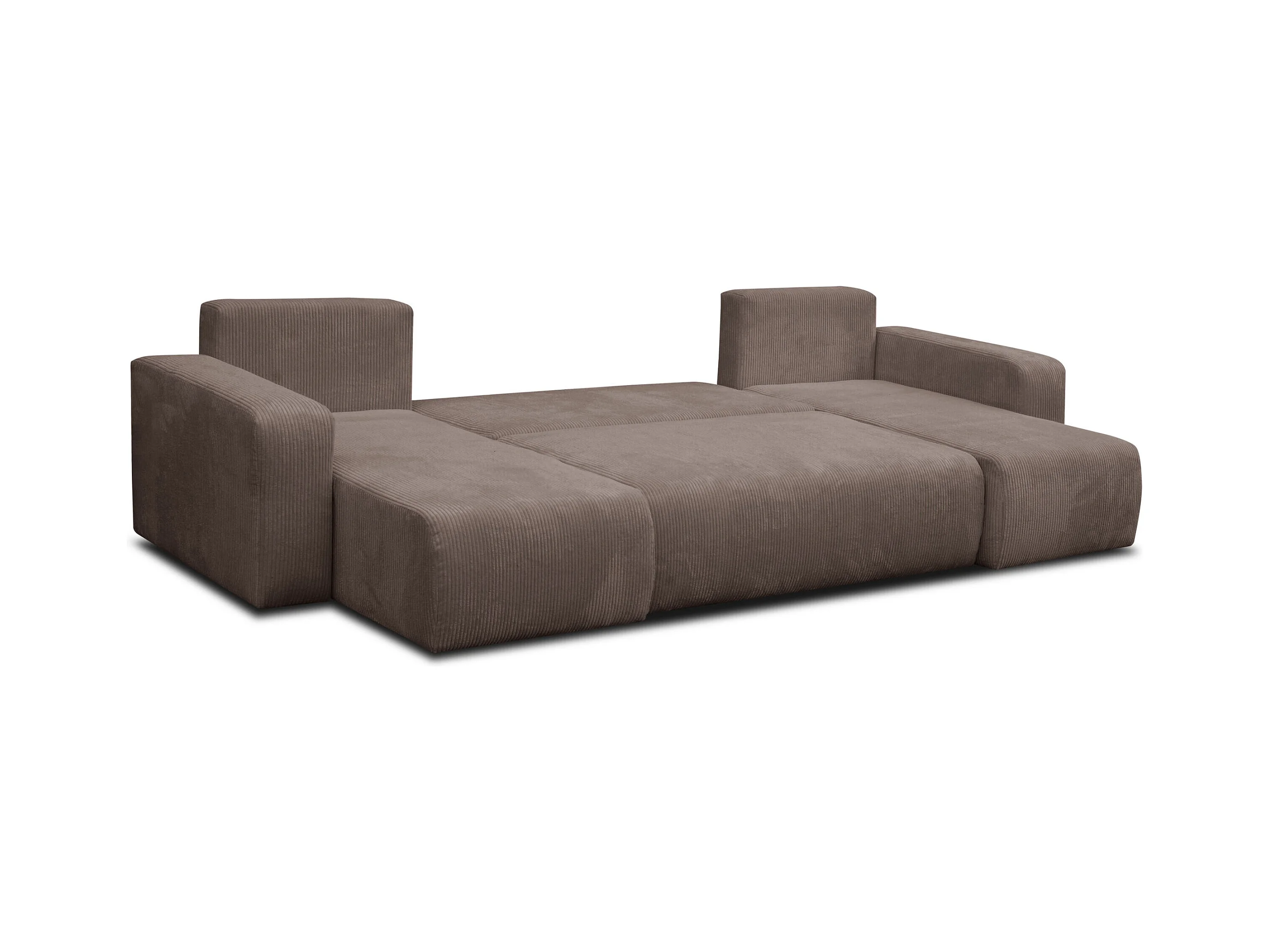 Ensemble de salon Luna U, canapé en U avec fonction couchage et coffre de rangement, couleur : marron clair, tissu cordé