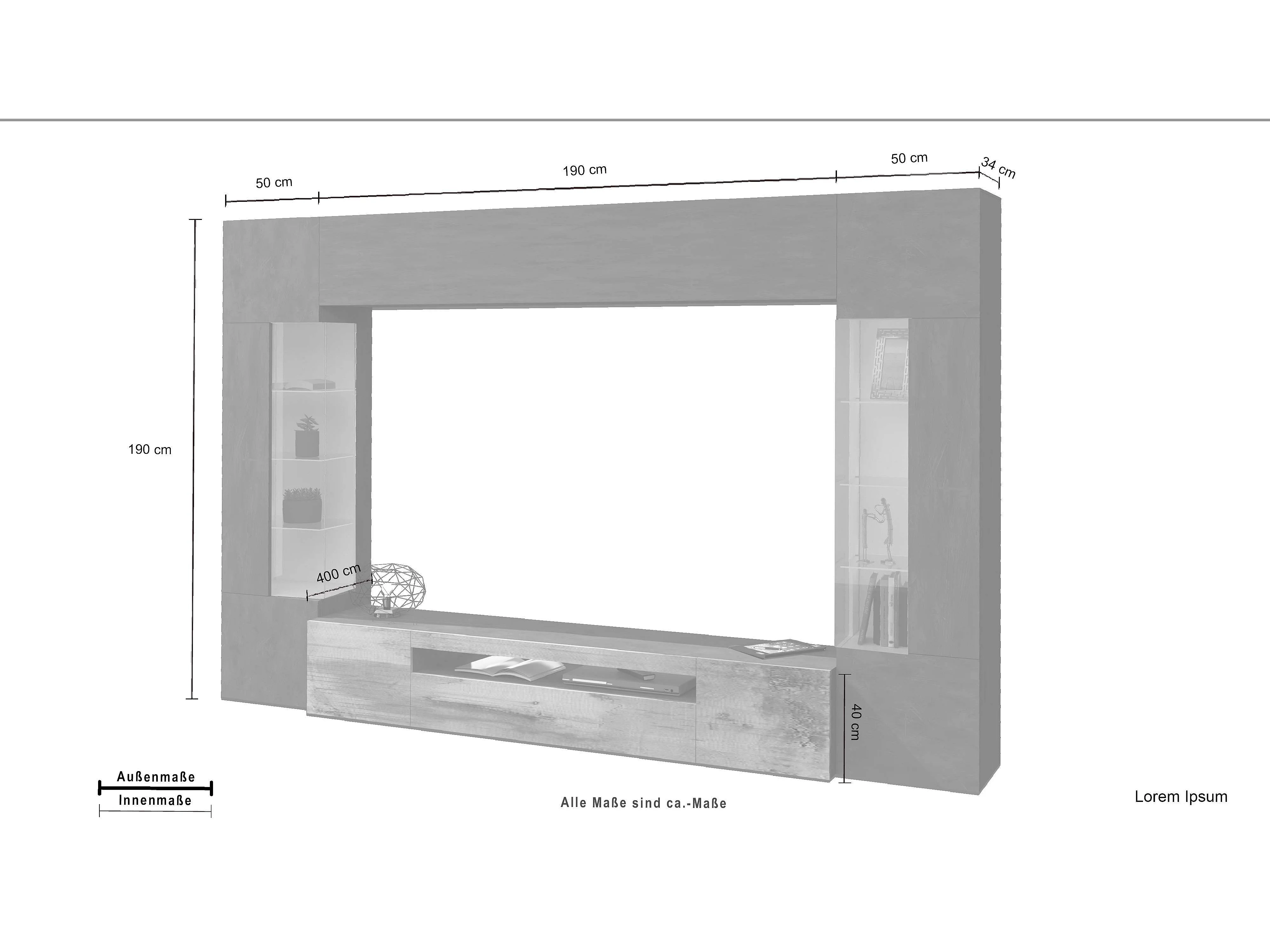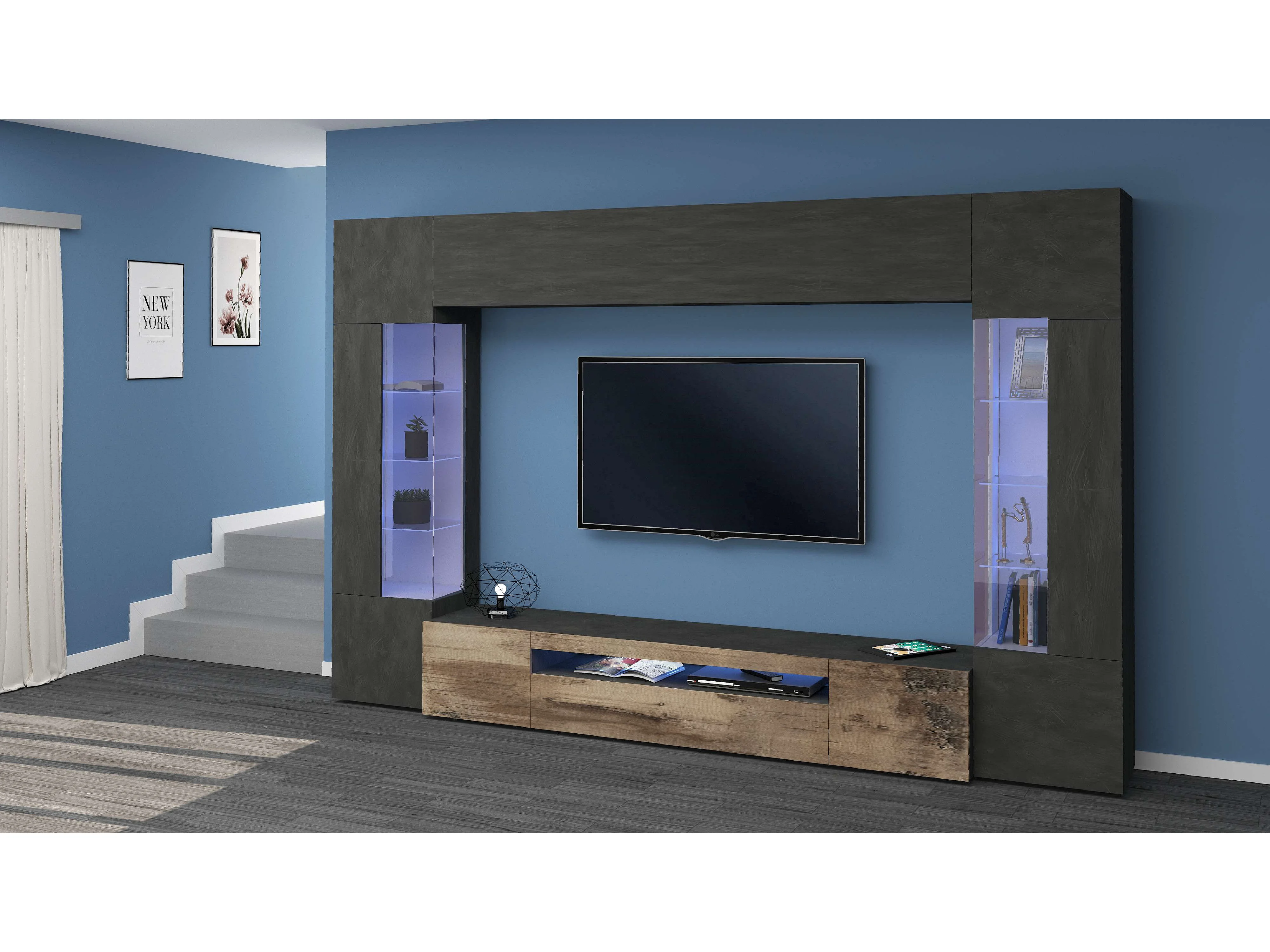 Ensemble de salon Meuble TV moderne noir 2 vitrines Sultan AP