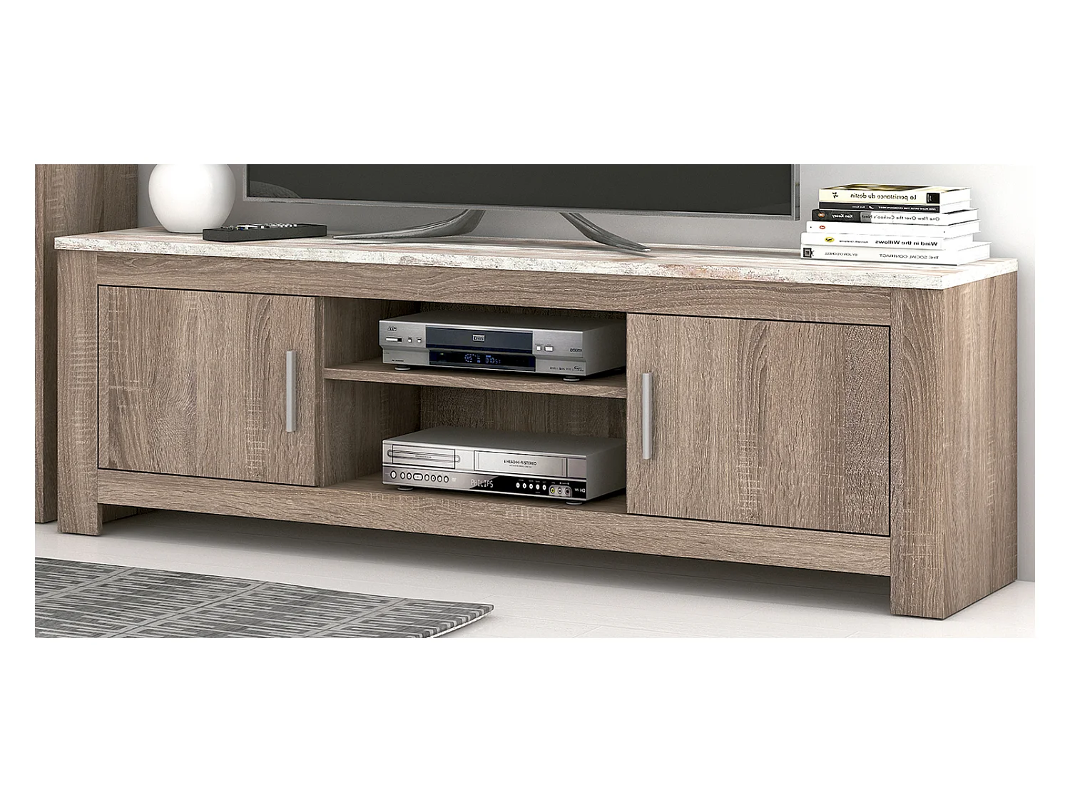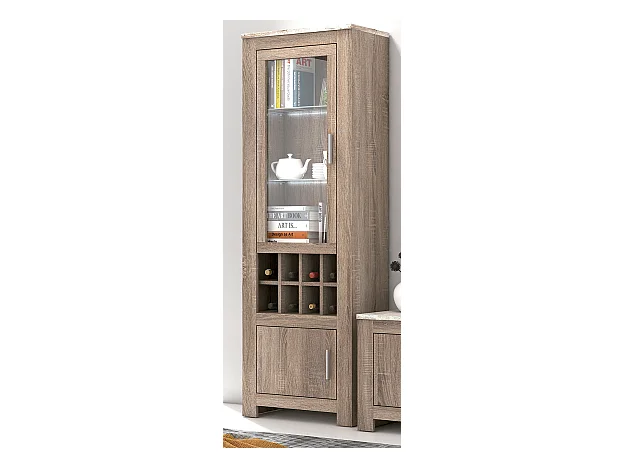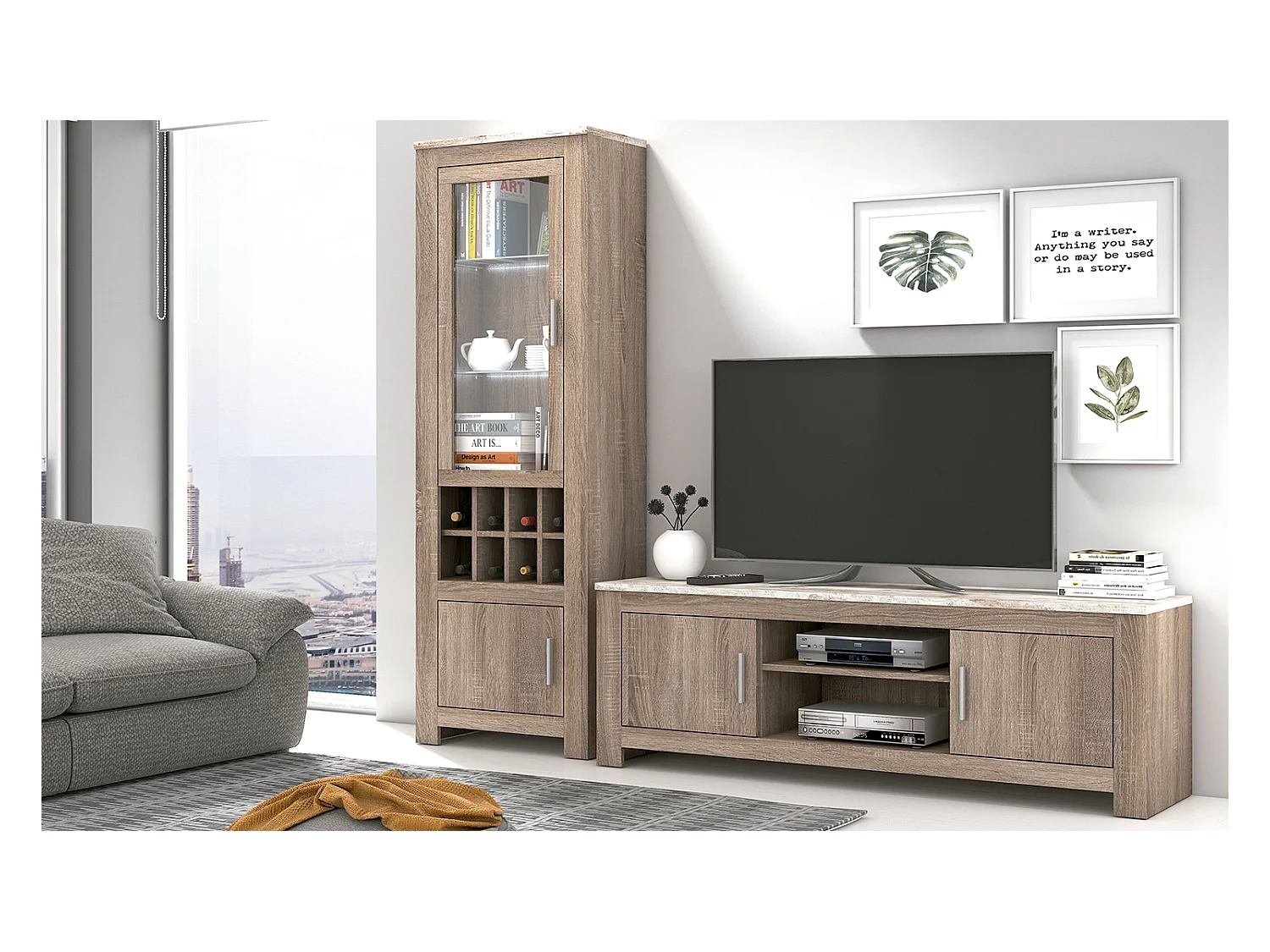 Ensemble de salon vitrine, meuble TV 2 portes coloris chêne truffé, blanc vieilli