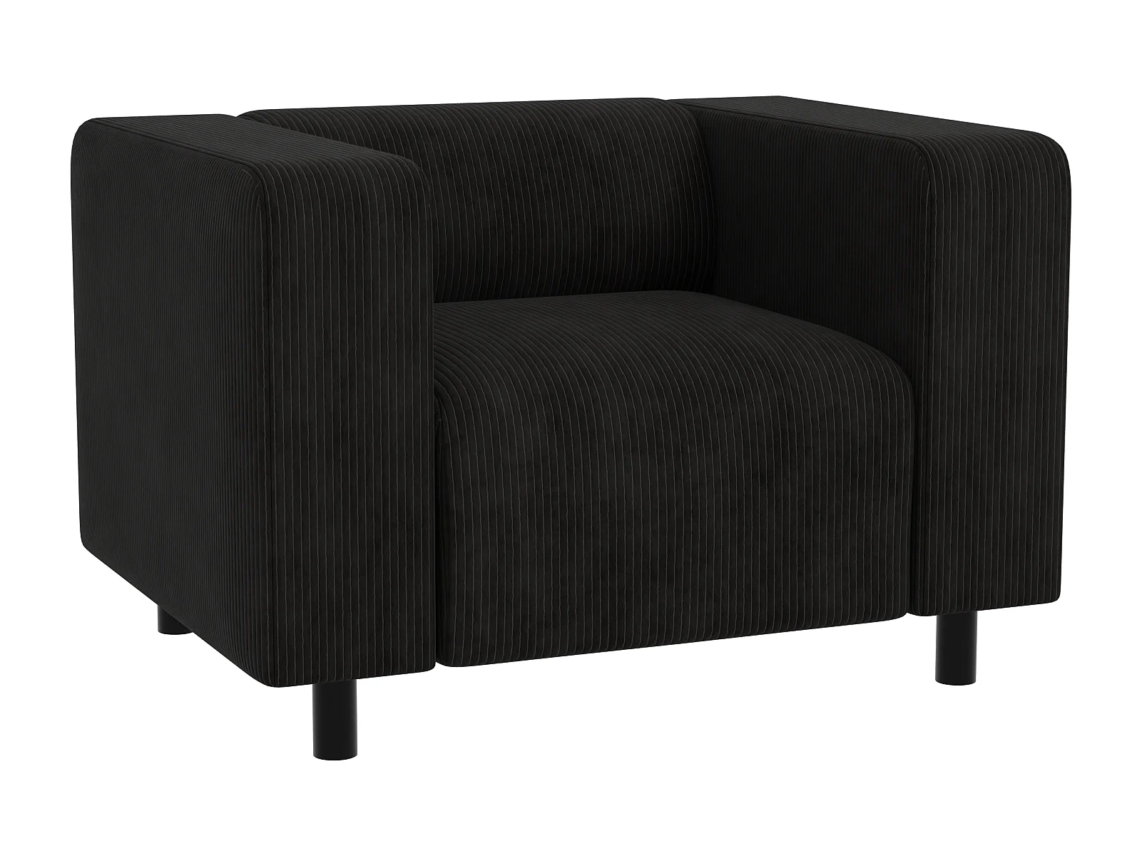 Ensemble de sièges moderne 2+1 en velours côtelé noir avec assise confortable THORA