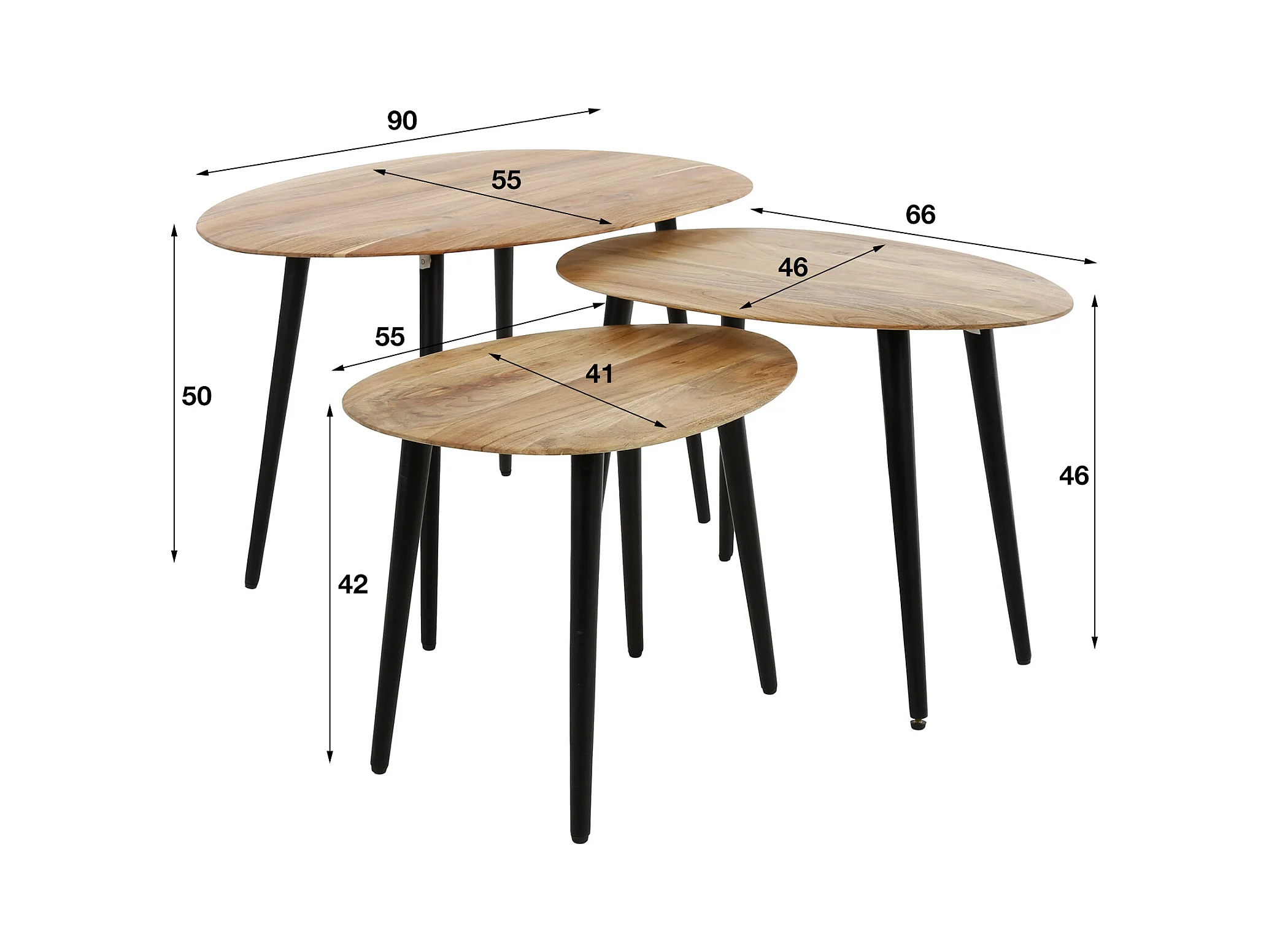 Ensemble de tables basses bio - Acacia massif naturel - Lot de 3