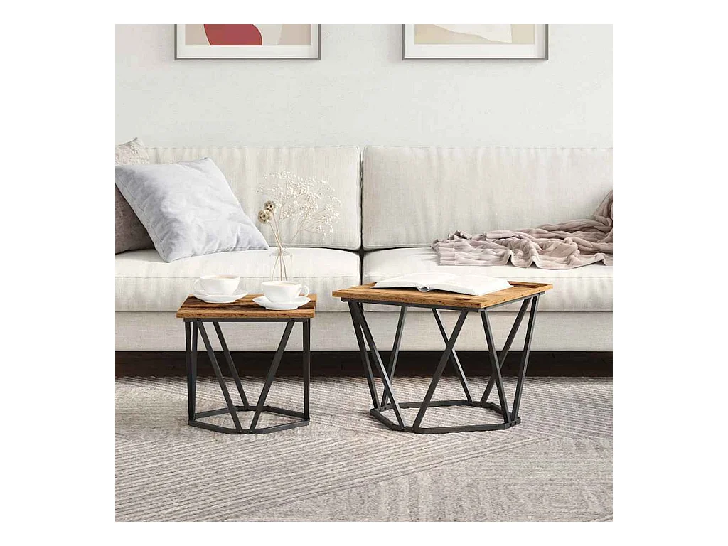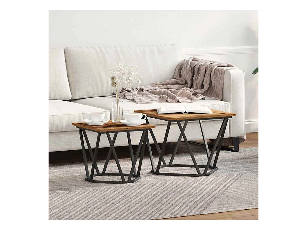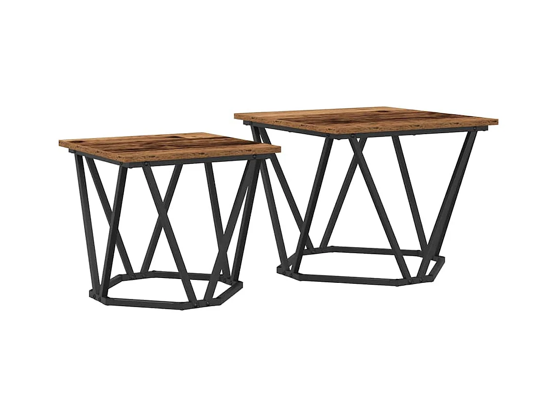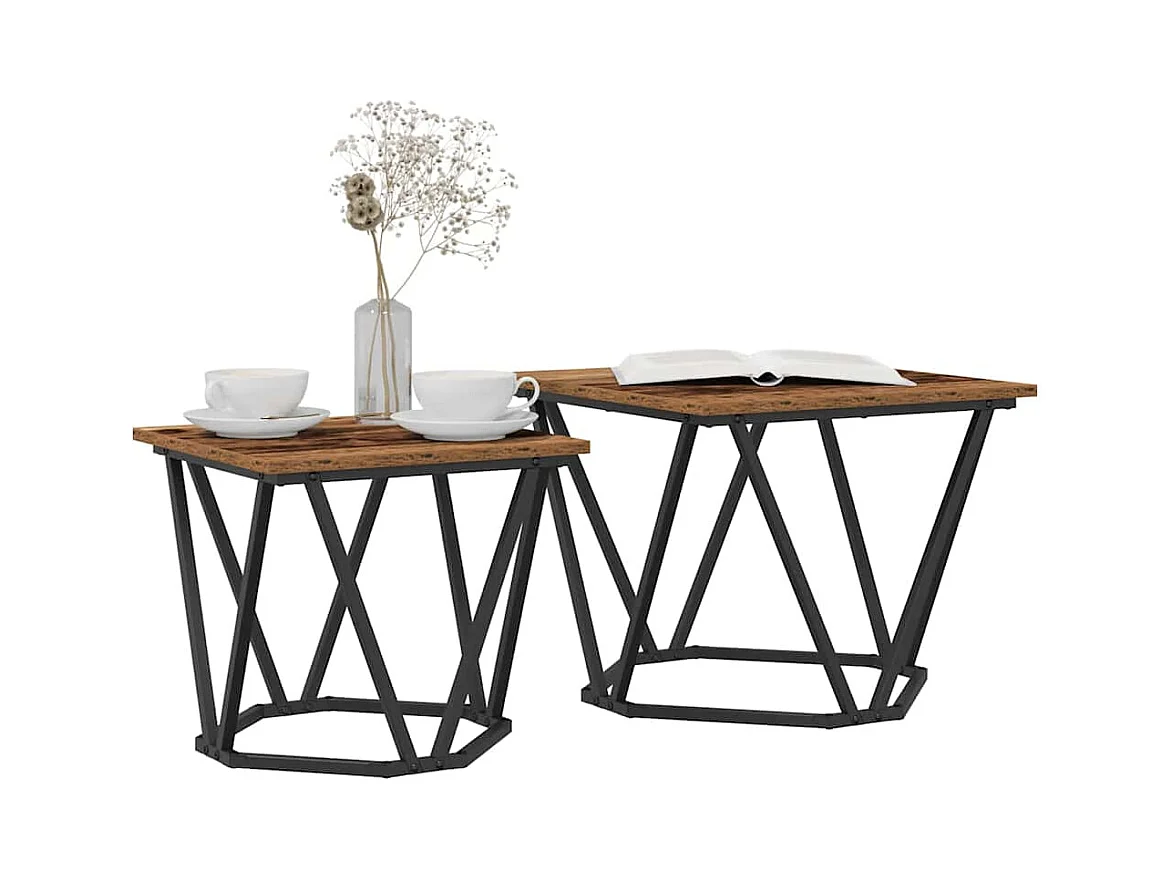 Ensemble de tables d'appoint 2 pièces Bois ancien et noir
