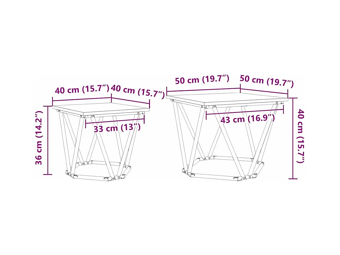Ensemble de tables d'appoint 2 pièces Chêne fumé 50 x 50 x 40 cm