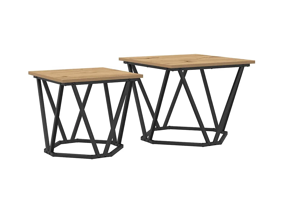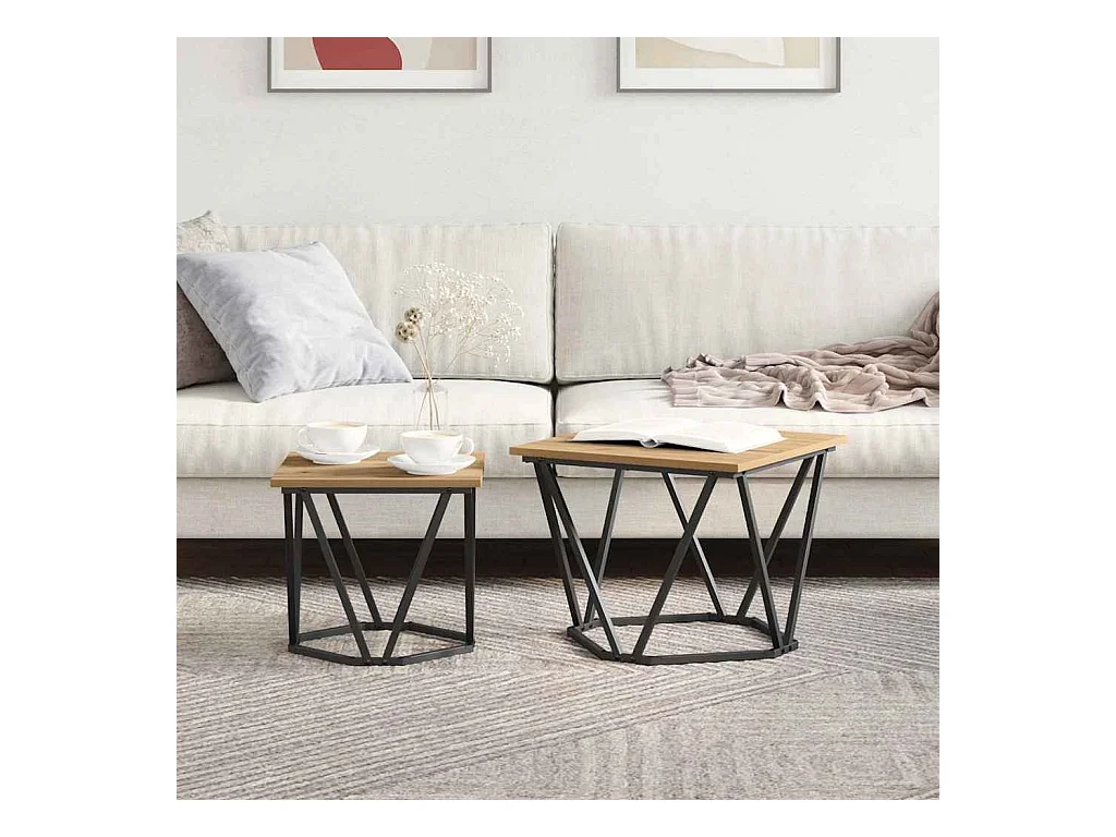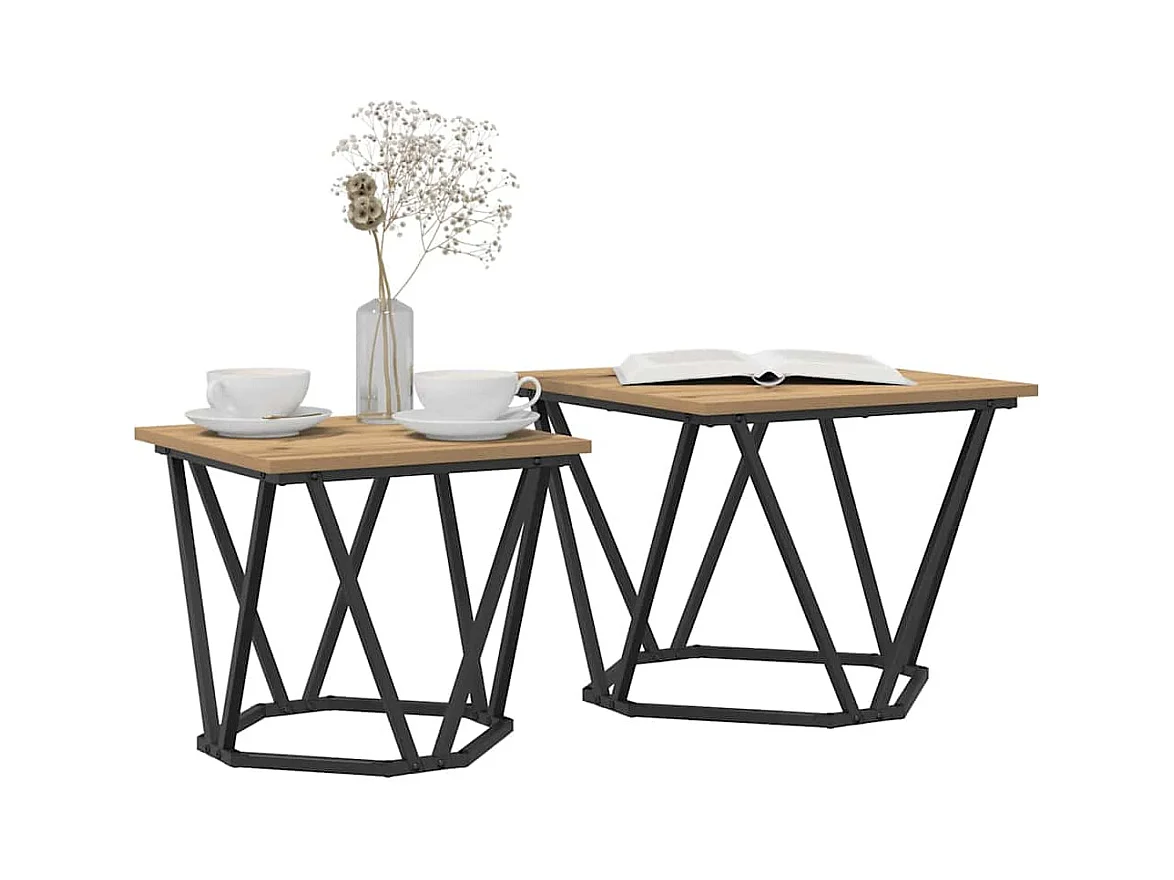 Ensemble de tables d'appoint 2 pièces Chêne artisanal et noir