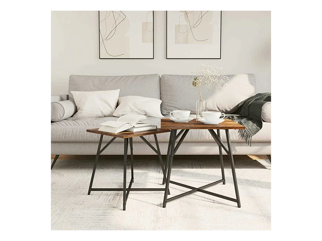 Ensemble de tables d'appoint 2 pièces Chêne fumé et noir