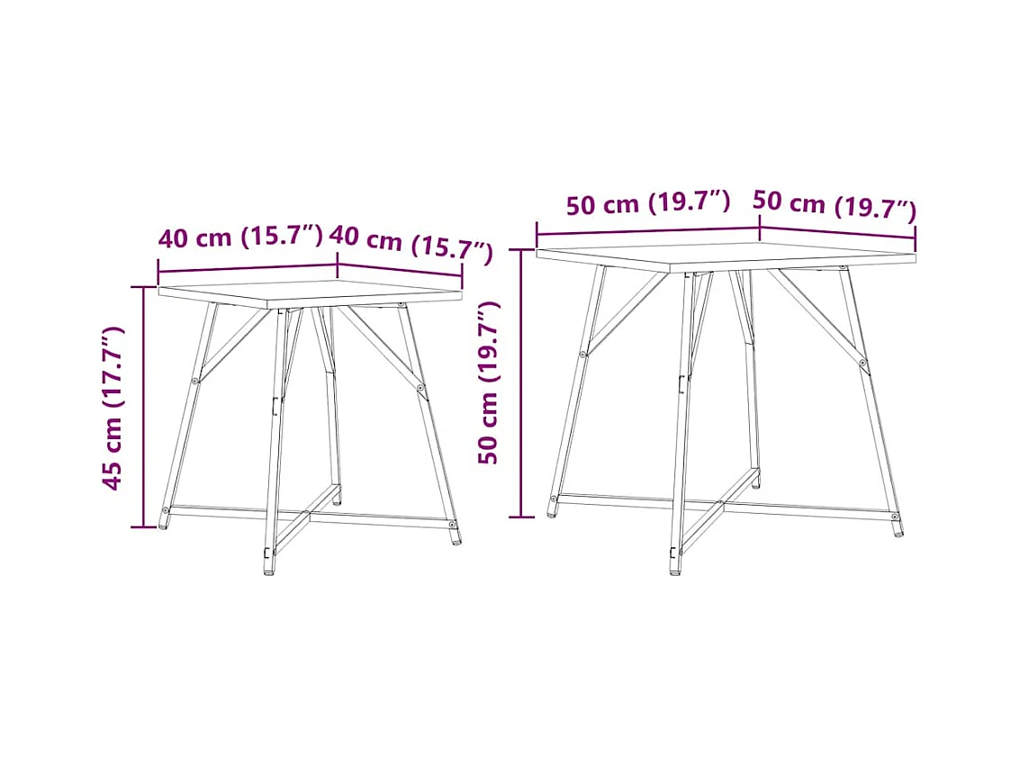 Ensemble de tables d'appoint 2 pièces Chêne fumé 50 x 50 x 40 cm