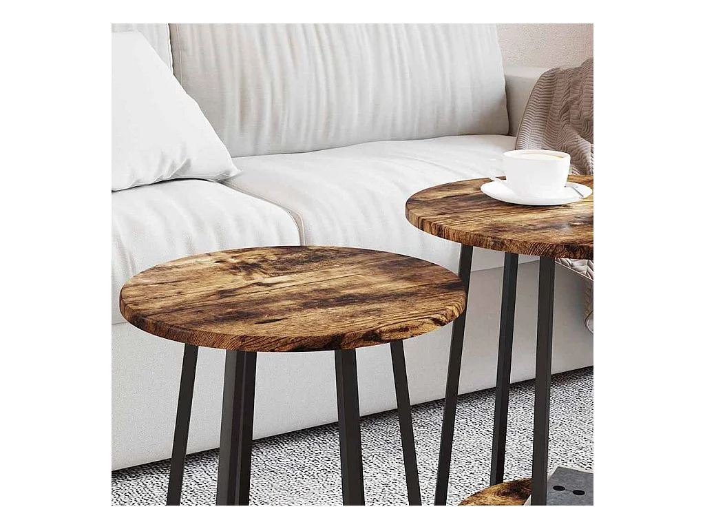 Ensemble de tables d'appoint 2 pièces Bois ancien et noir