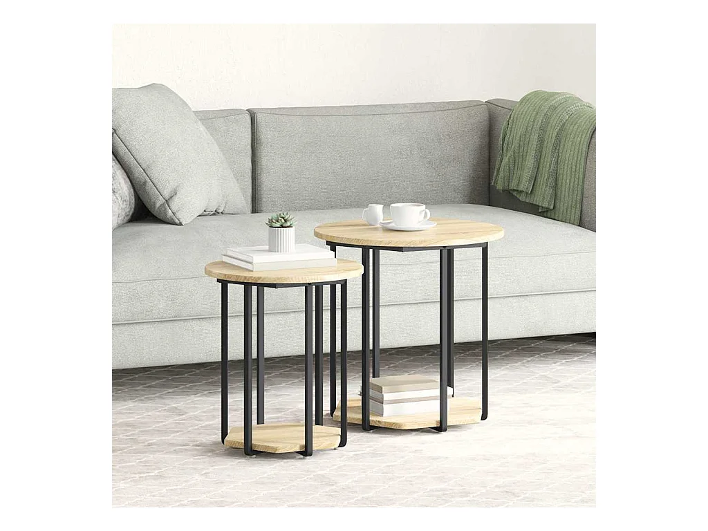 Ensemble de tables d'appoint 2 pièces Chêne Sonoma et noir