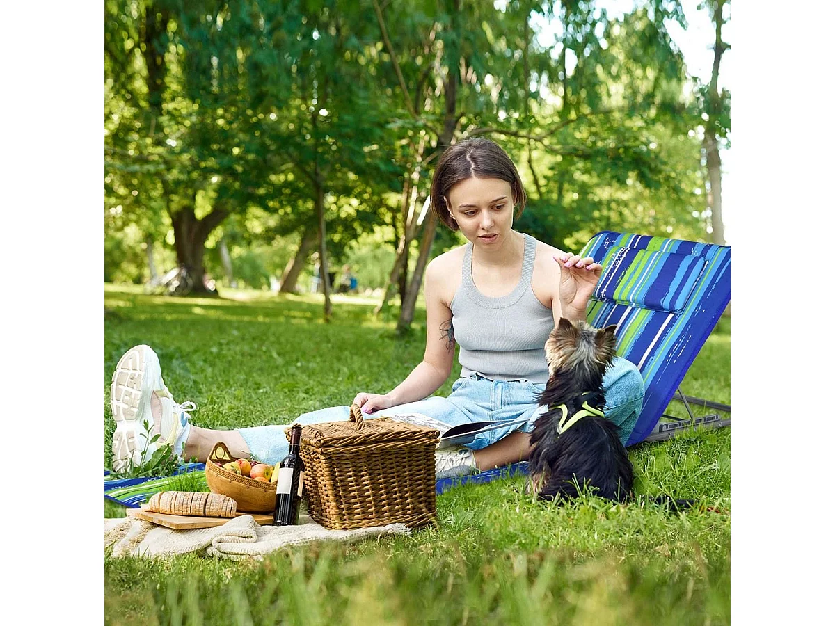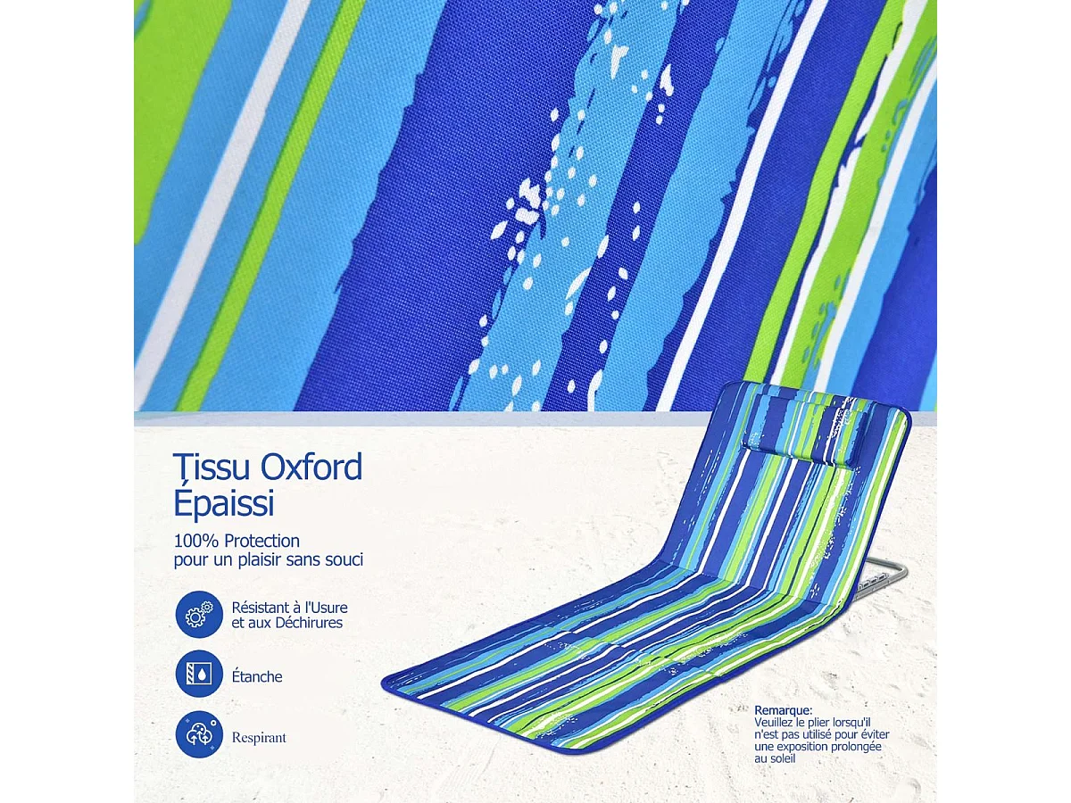 Lot de 2 tapis de plage rembourrés - dossier inclinable 5 positions - sac transport inclus - acier polyester multicolore