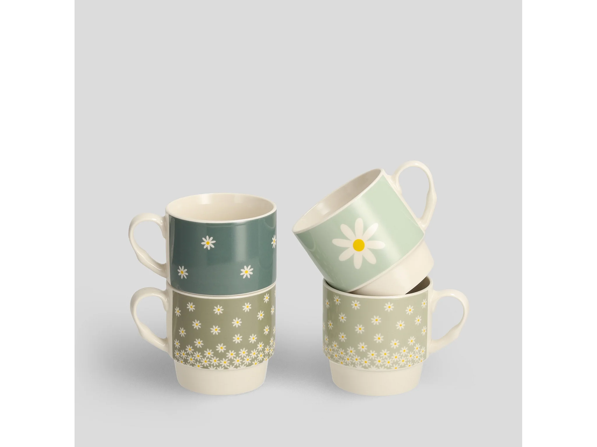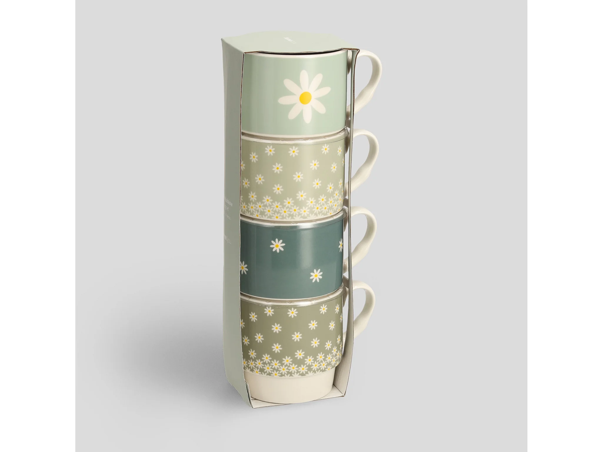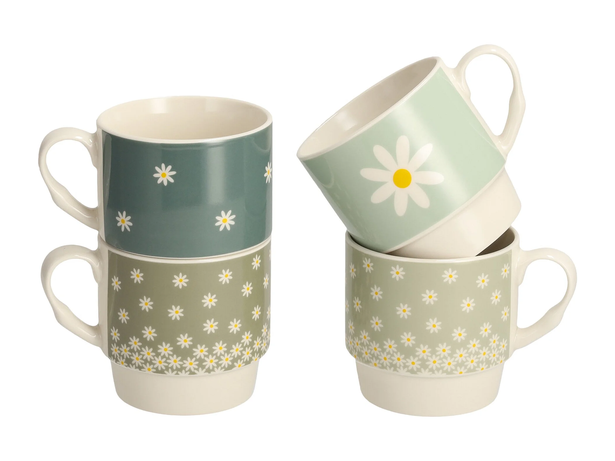 Coffret 4 pièces champêtre avec sous tasses 18 cl