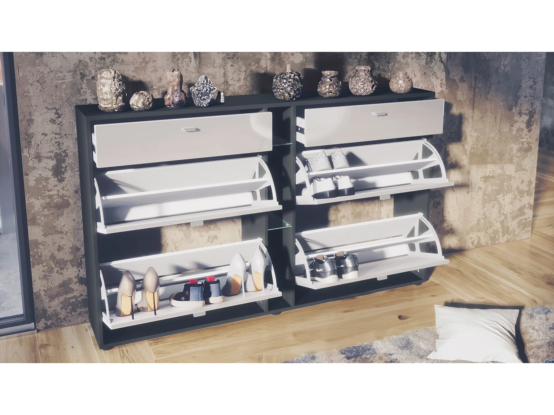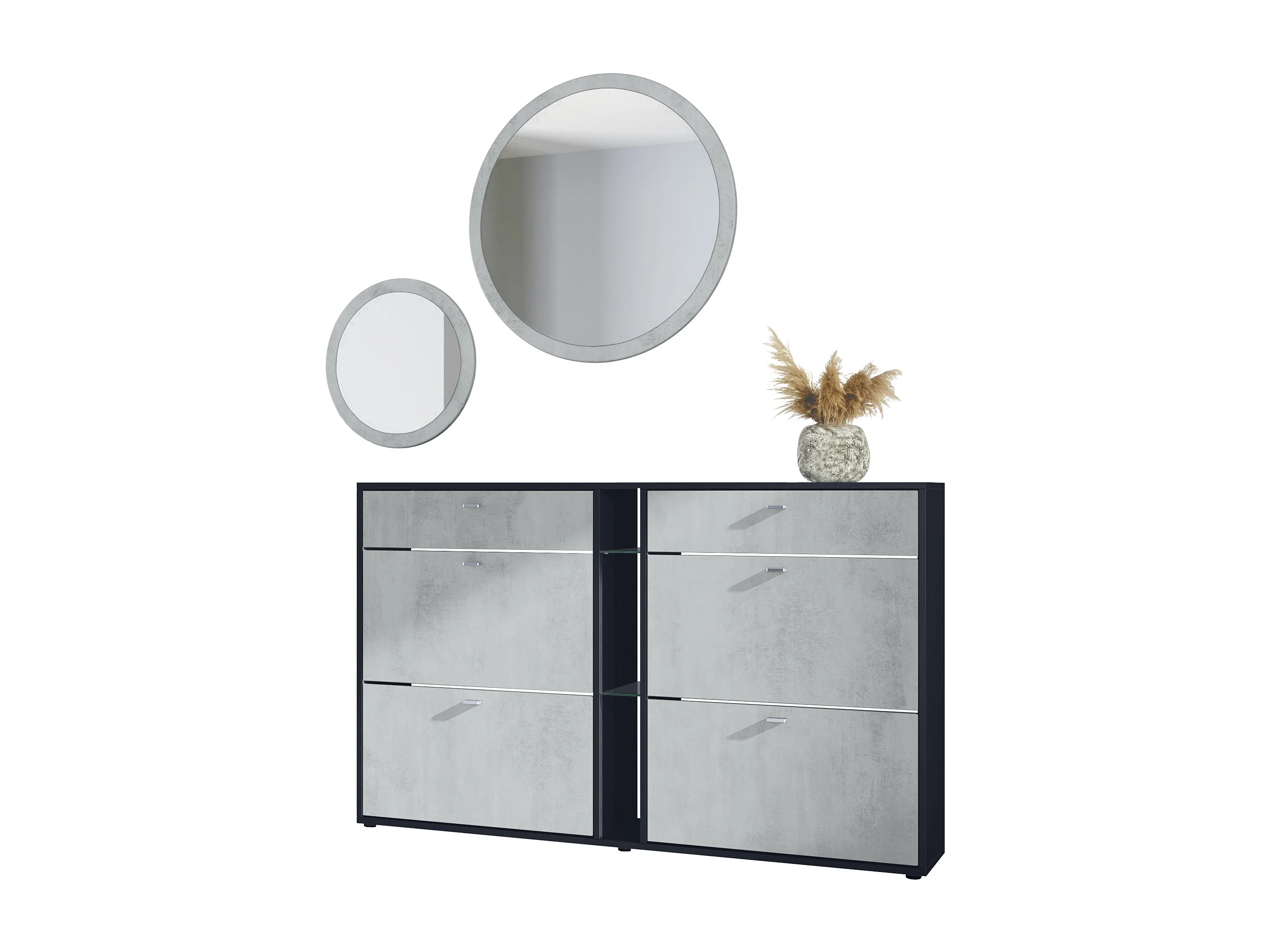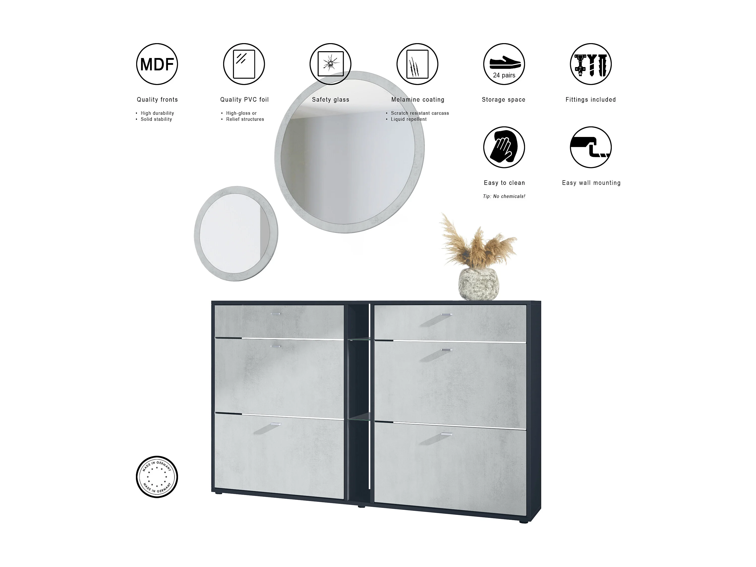 Ensemble de vestiaire Florence avec armoire à chaussures et 2 miroirs muraux, Fabriqué en ALLEMAGNE, noir mat/aspect béton oxyde