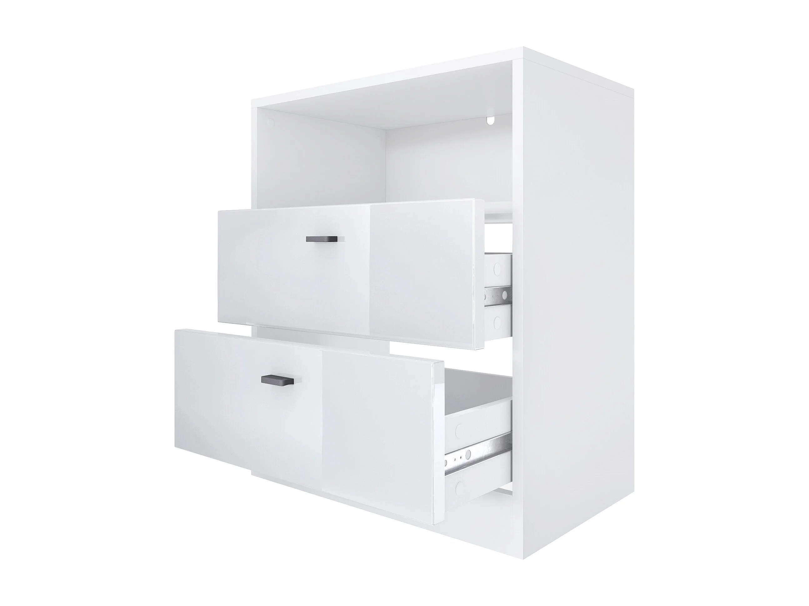 Ensemble de vestiaires Pino V1, 2 Panneaux muraux 140 cm et buffet avec 2 tiroirs & 1 compartiment ouvert, blanc mat/gris haute brillance (56 x 67,5 x 36 cm)