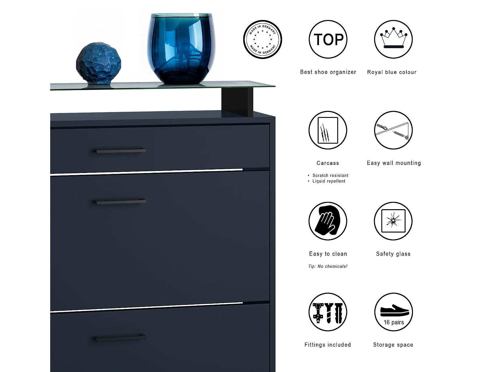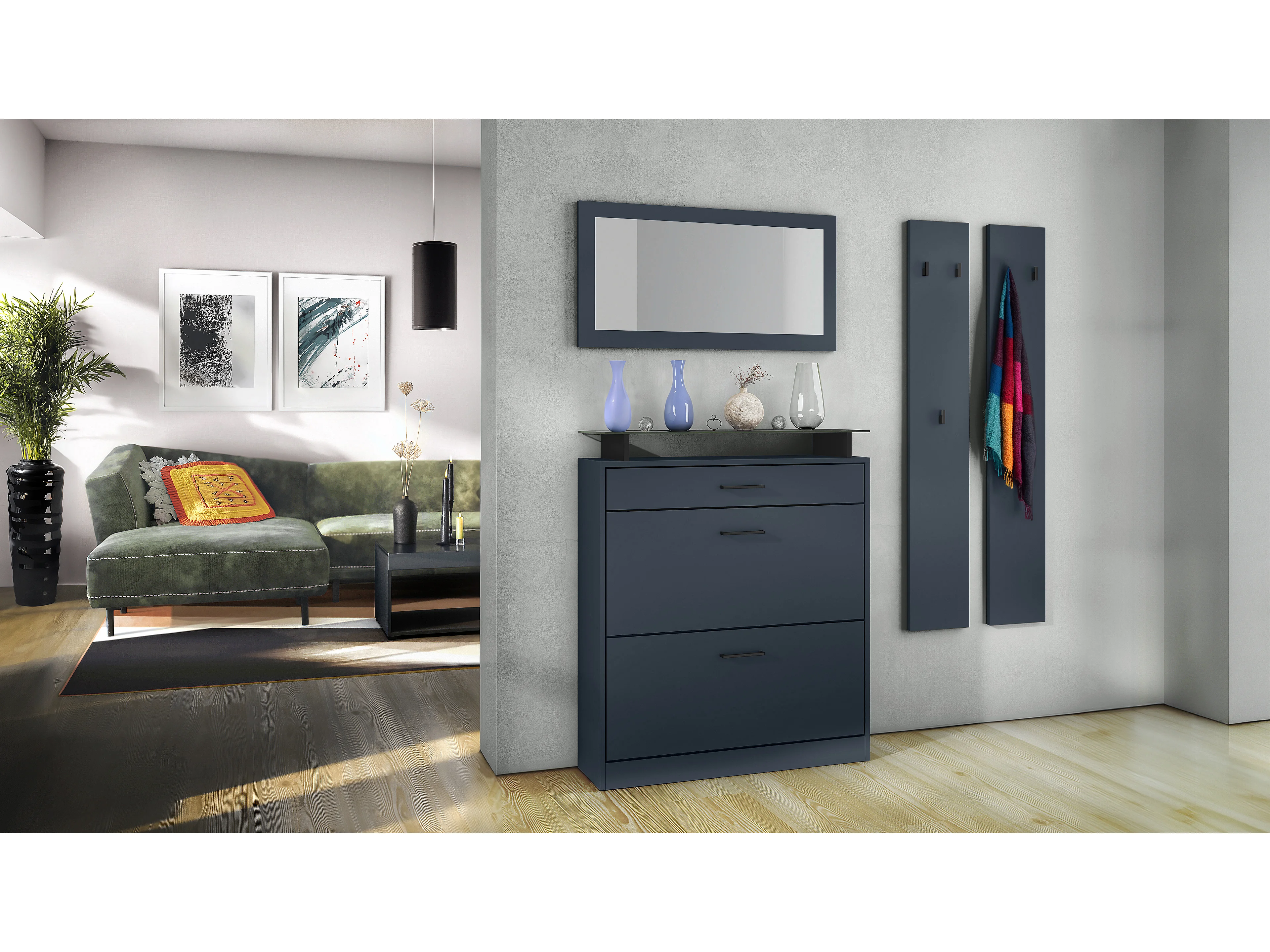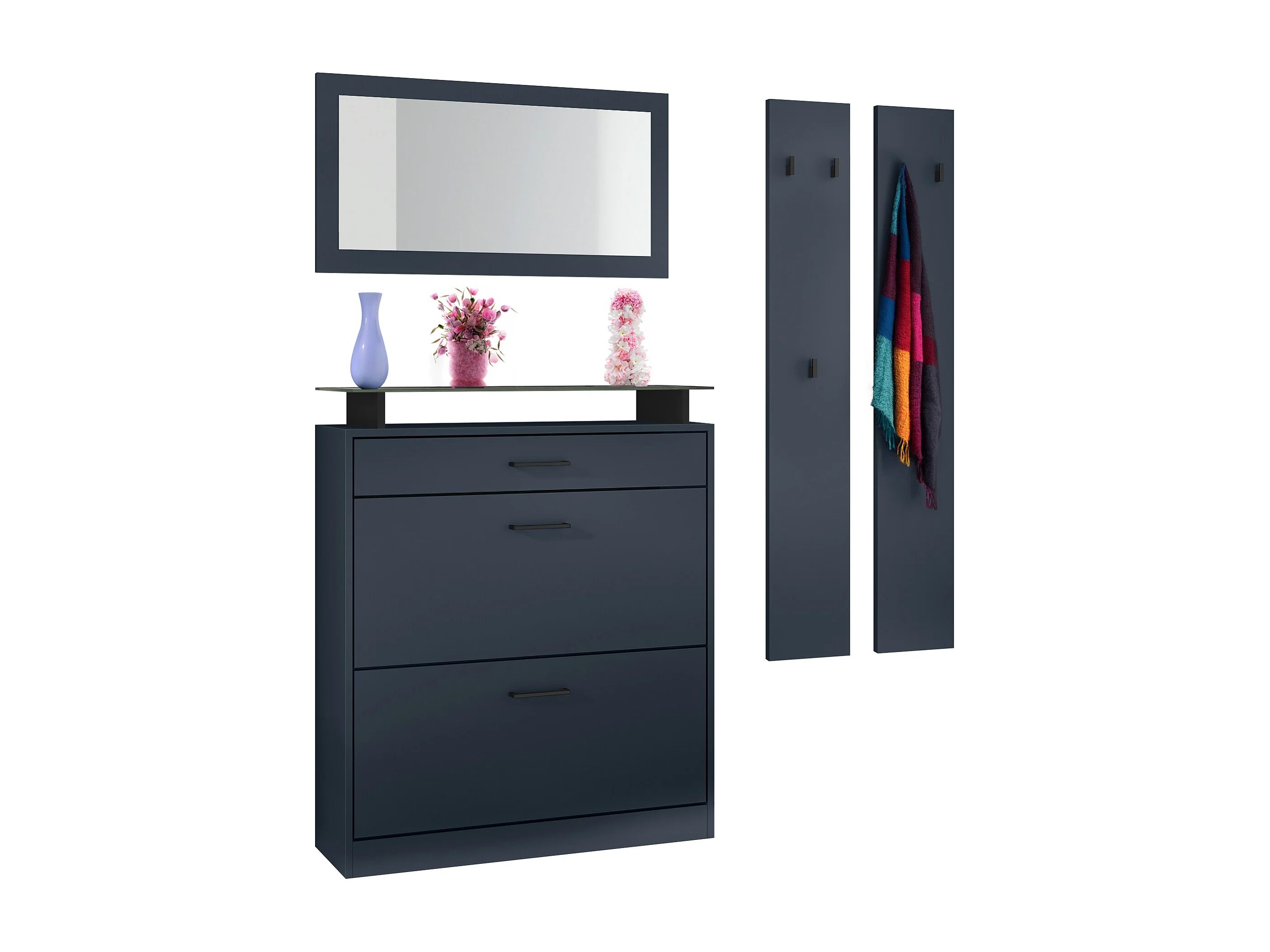 Ensemble d'Entrée Enigma, Composé d'un Meuble à Chaussures, d'un Miroir Mural et de 2 Panneaux Porte-Manteaux Bleu royal