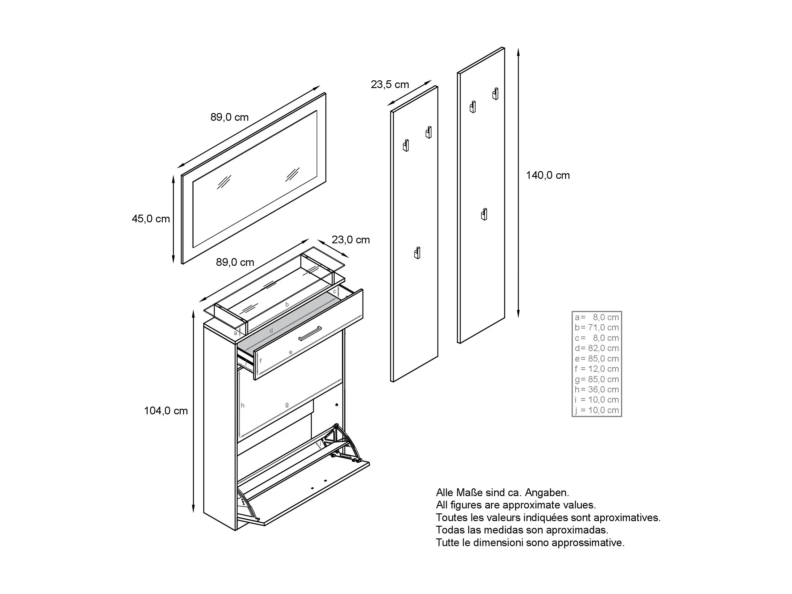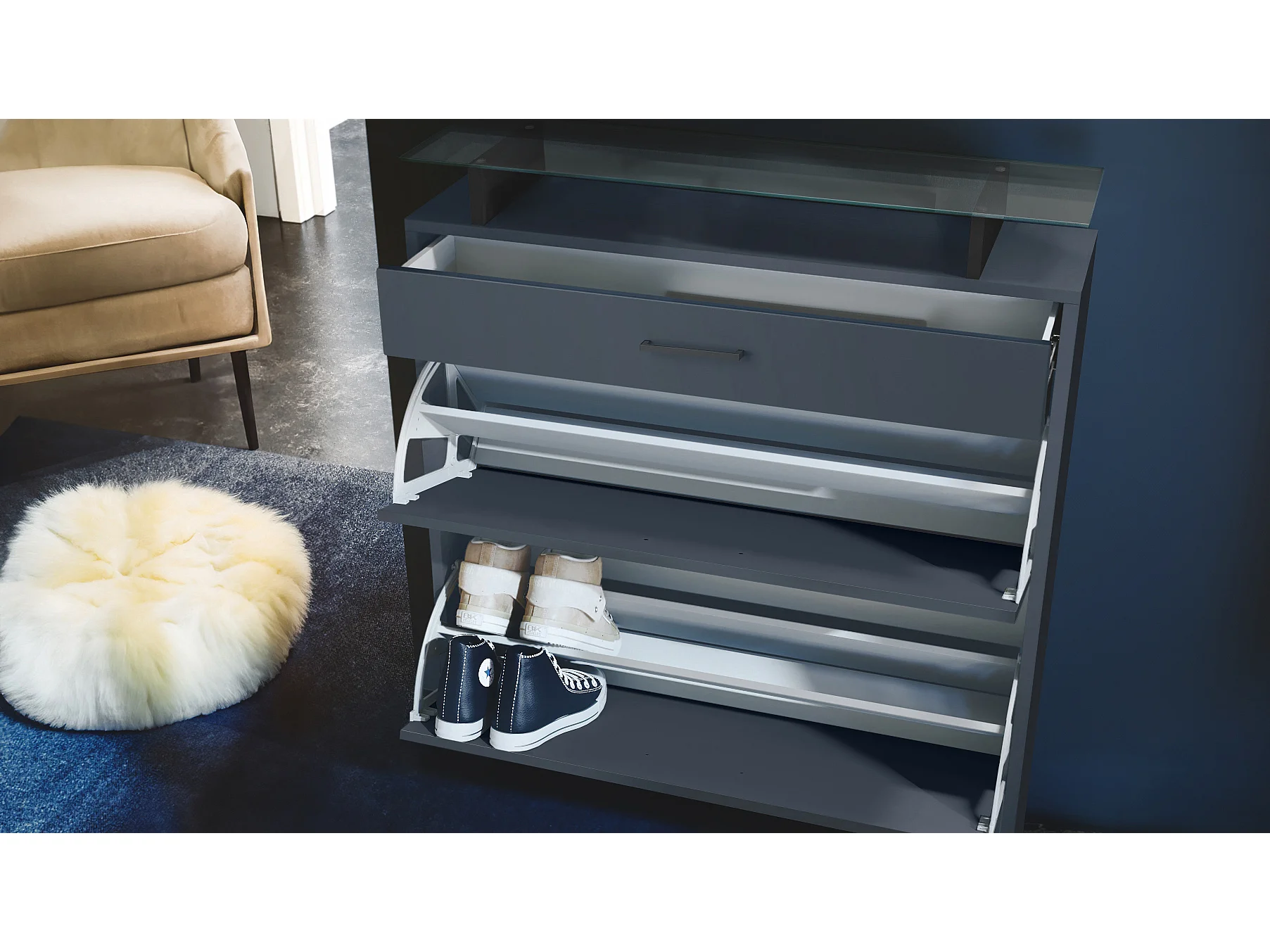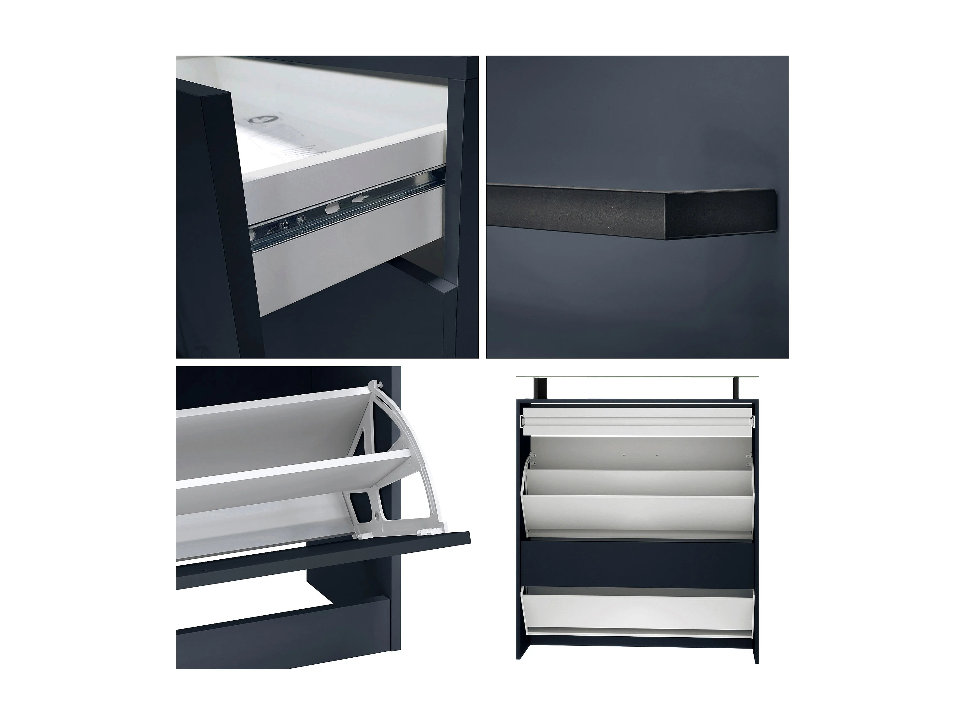 Ensemble d'Entrée Enigma, Composé d'un Meuble à Chaussures, d'un Miroir Mural et de 2 Panneaux Porte-Manteaux Bleu royal
