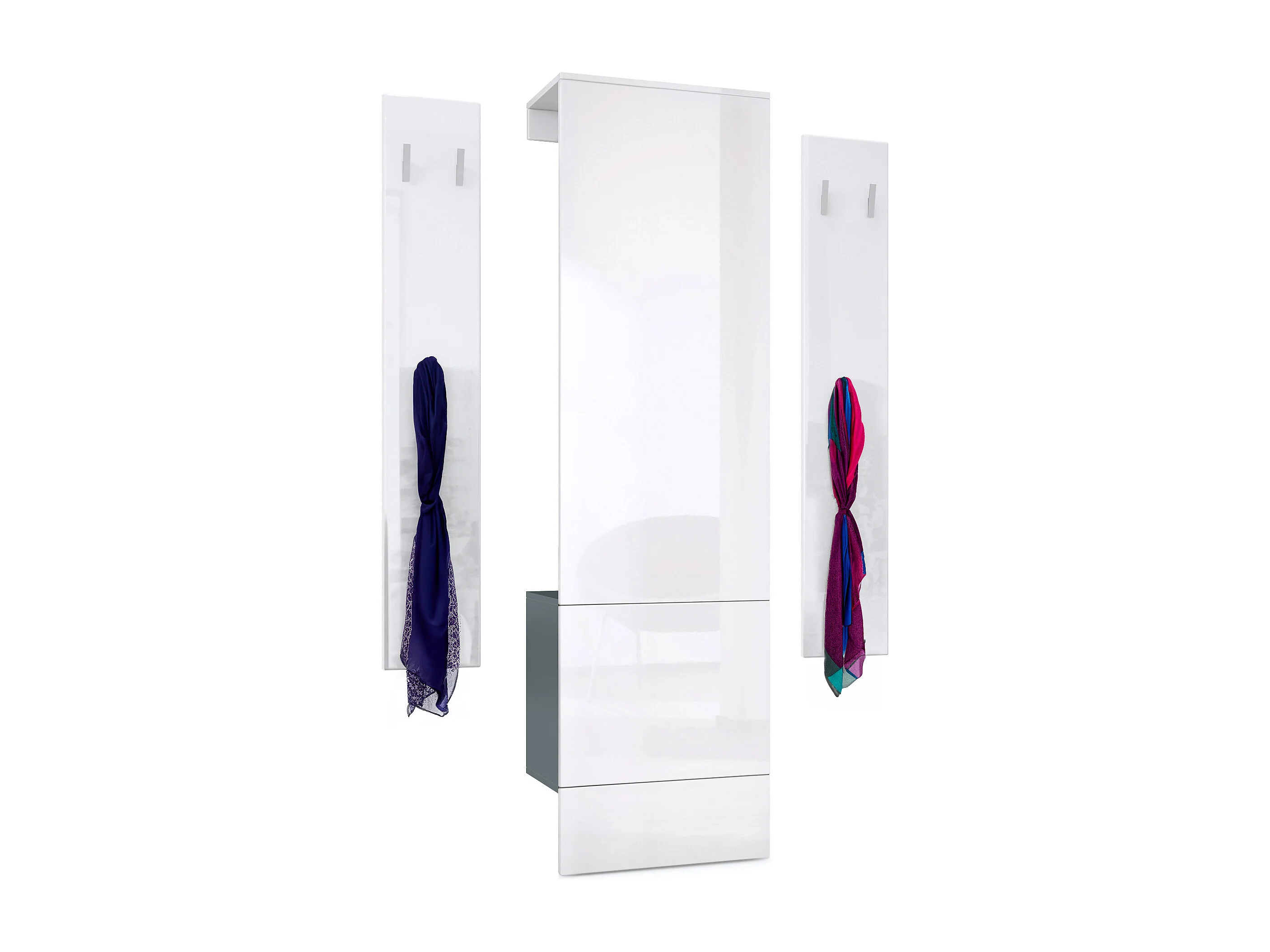 Ensemble d'entrée Hollywood, comprenant 1 panneau de vestiaire mural, 1 tringle à vêtements et 1 ensemble de panneaux muraux, anthracite mat/Blanc brillant