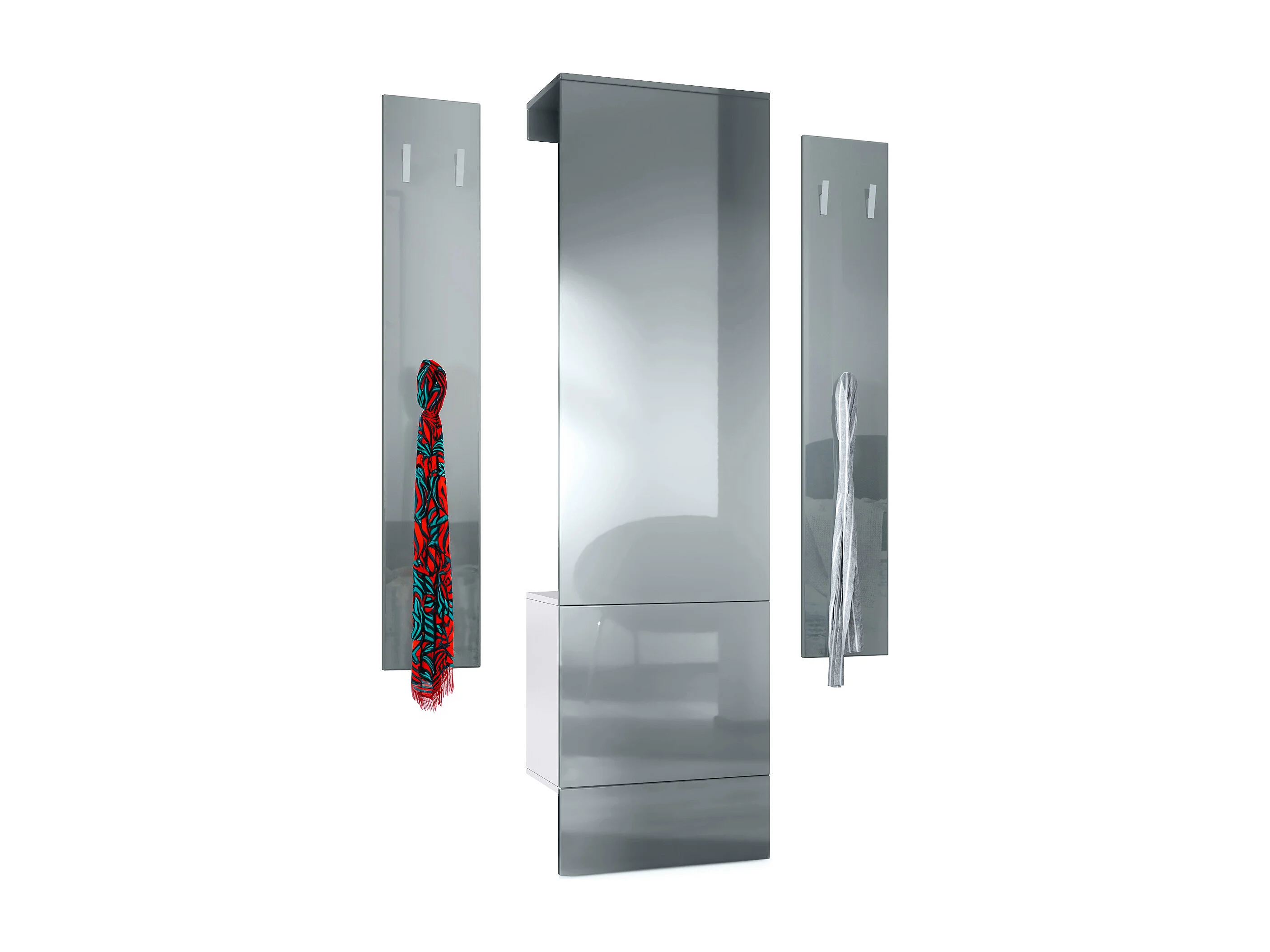 Ensemble d'entrée Hollywood, comprenant 1 panneau de vestiaire mural, 1 tringle à vêtements et 1 ensemble de panneaux muraux, blanc mat/gris brillant