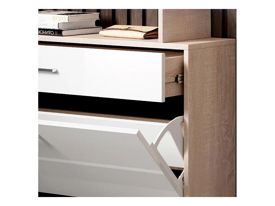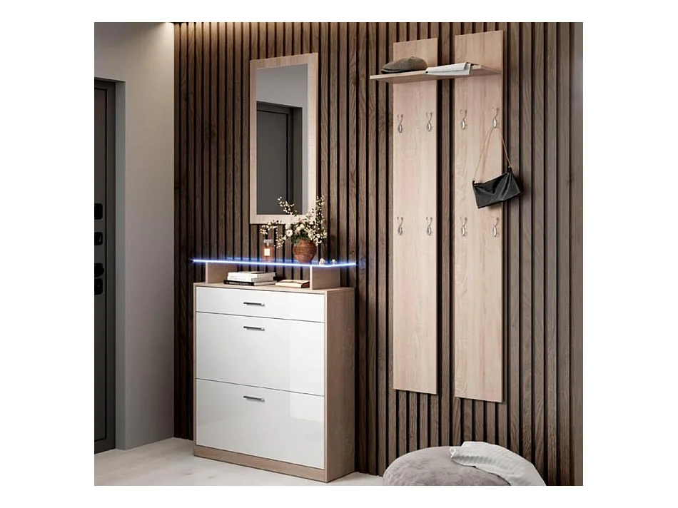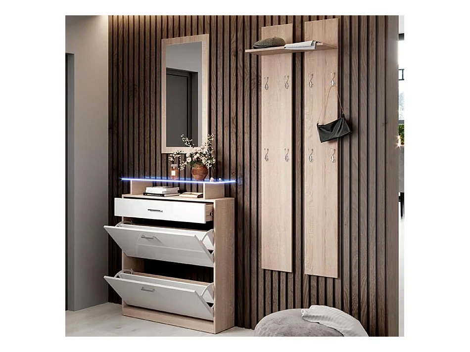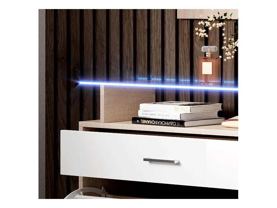 Ensemble d'entrée en Sonoma et Blanc avec LED 105x24x89cm Paola