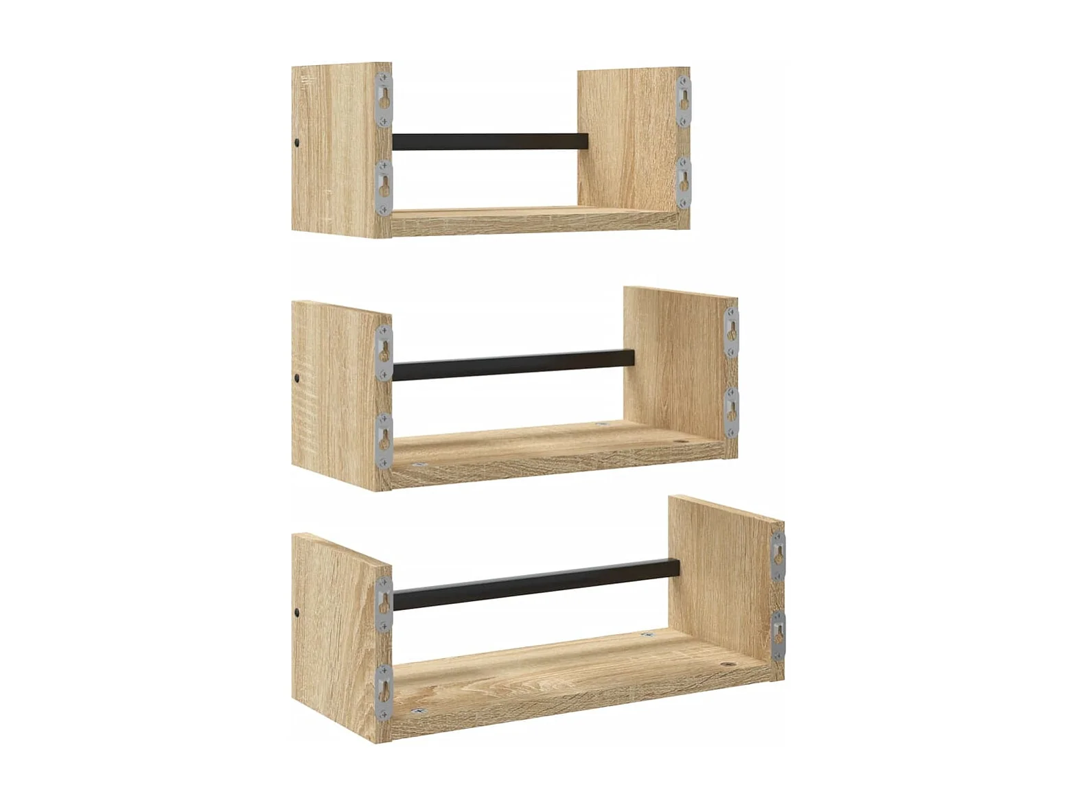 Ensemble d'étagères murales 3pcs chêne sonoma bois d'ingénierie