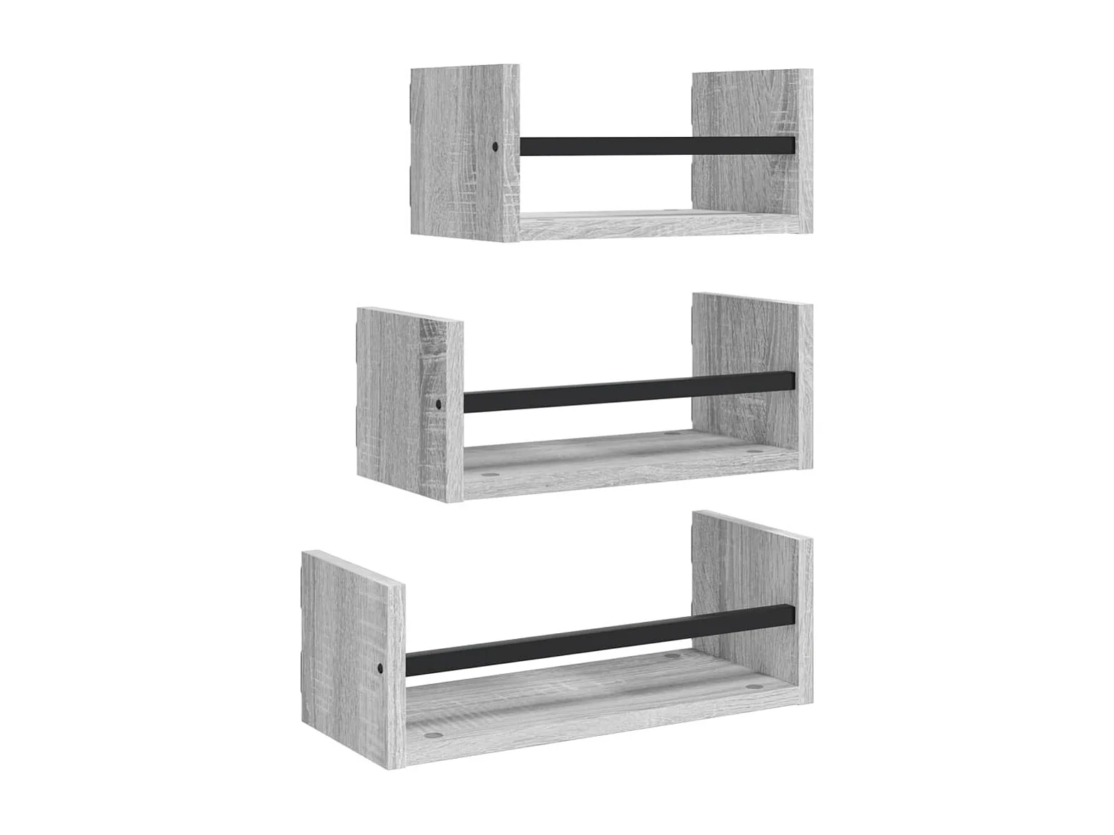 Ensemble d'étagères murales avec barres 3 pcs sonoma gris OFR91171 BonneVie Meuble