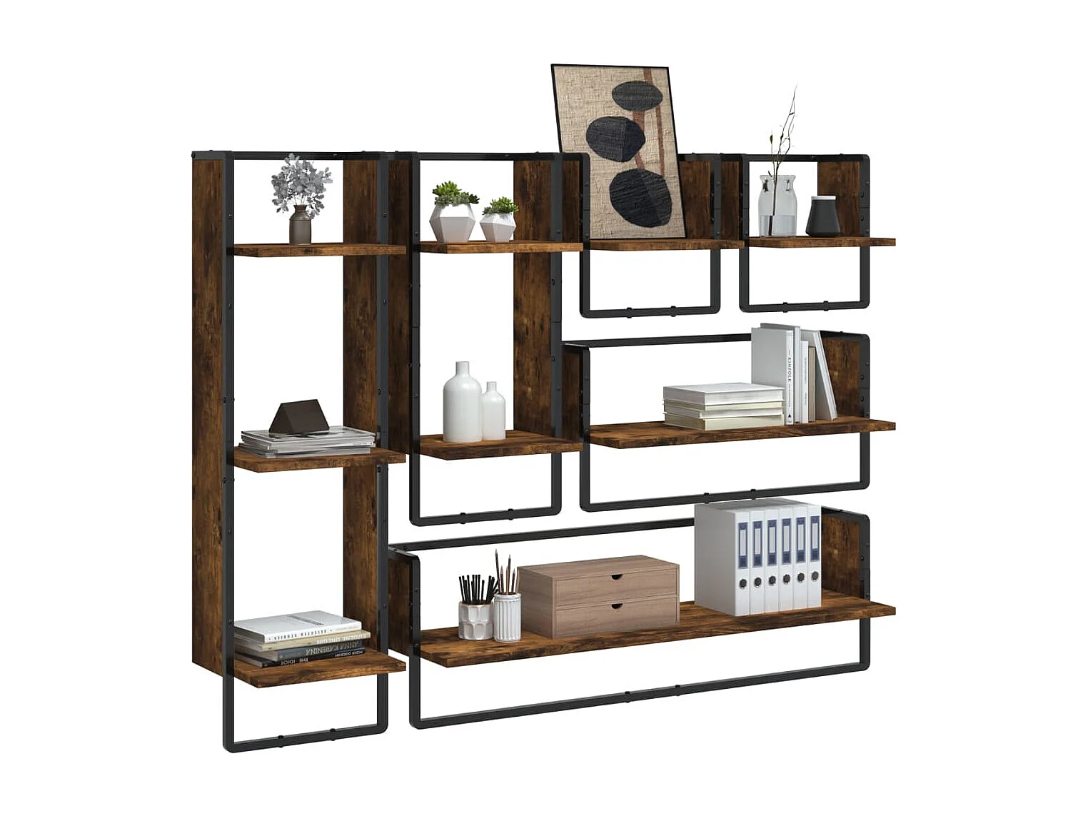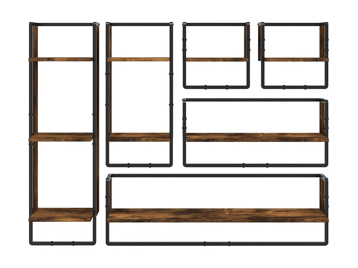 Ensemble d'étagères murales avec barres 6 pcs chêne fumé
